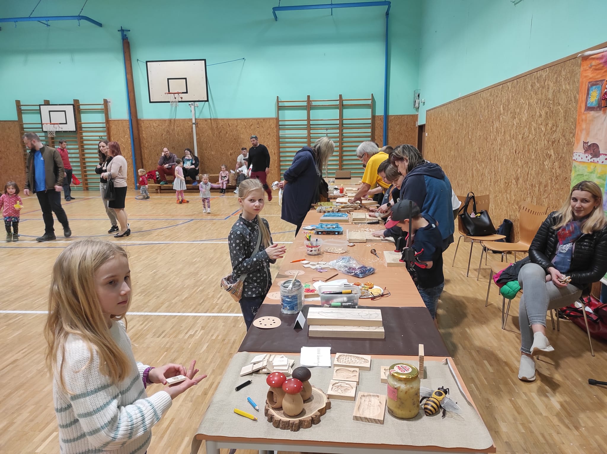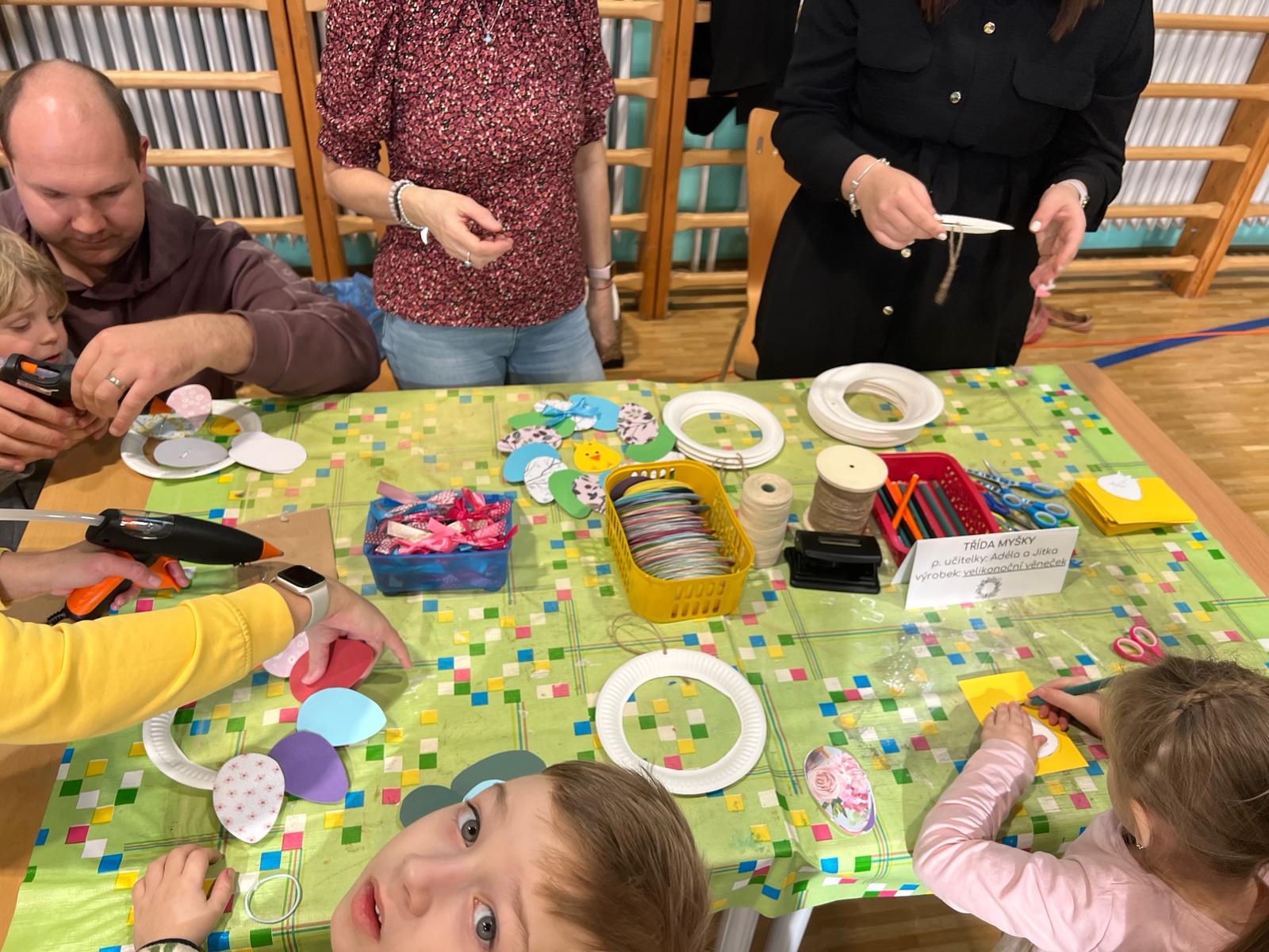 Ve čtvrtek 21. března jsme se sešli v naší tělocvičně a velice příjemně přivítali jaro a blížící se svátky. Společné tvoření dětí s rodiči, ukázka