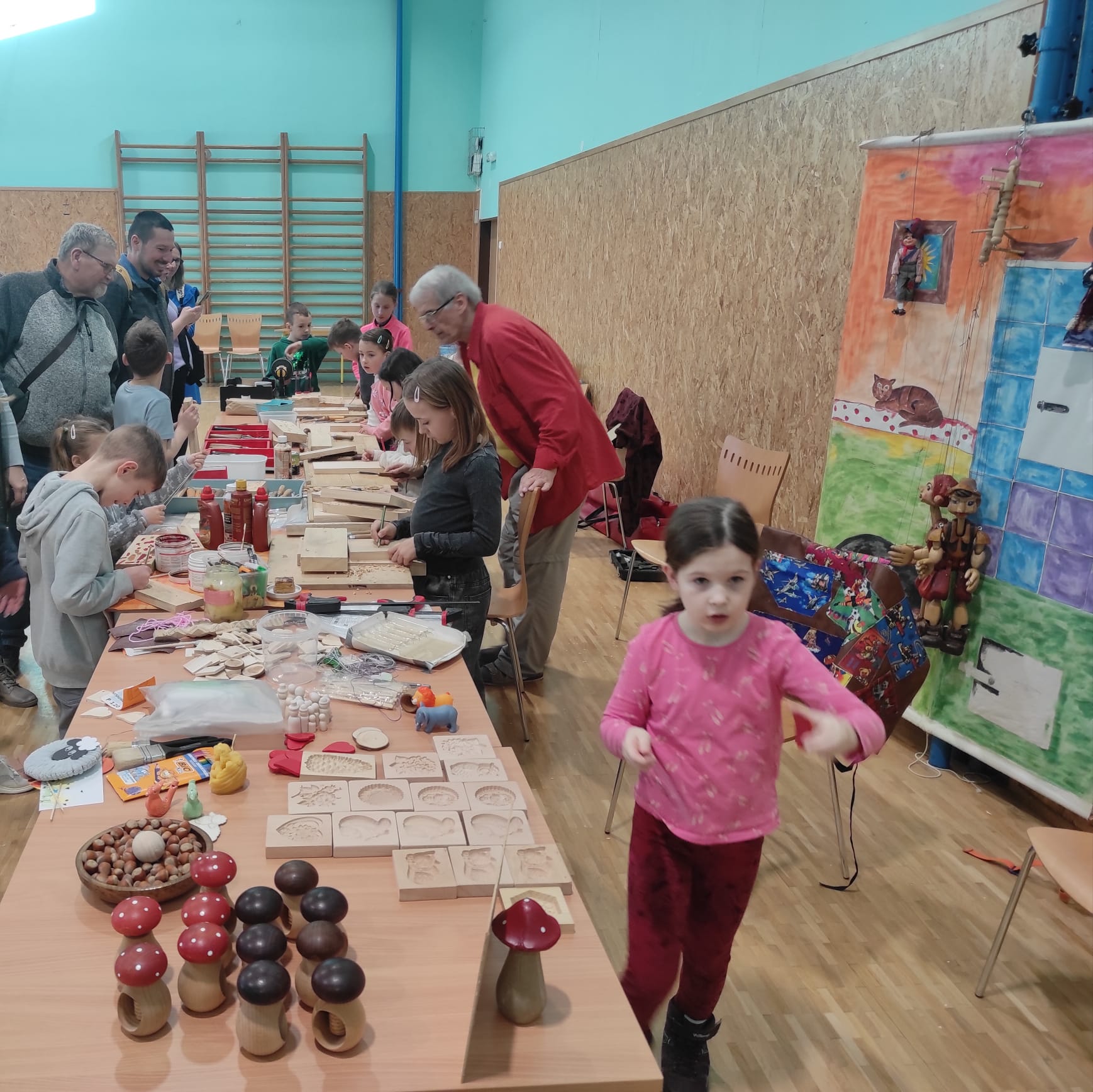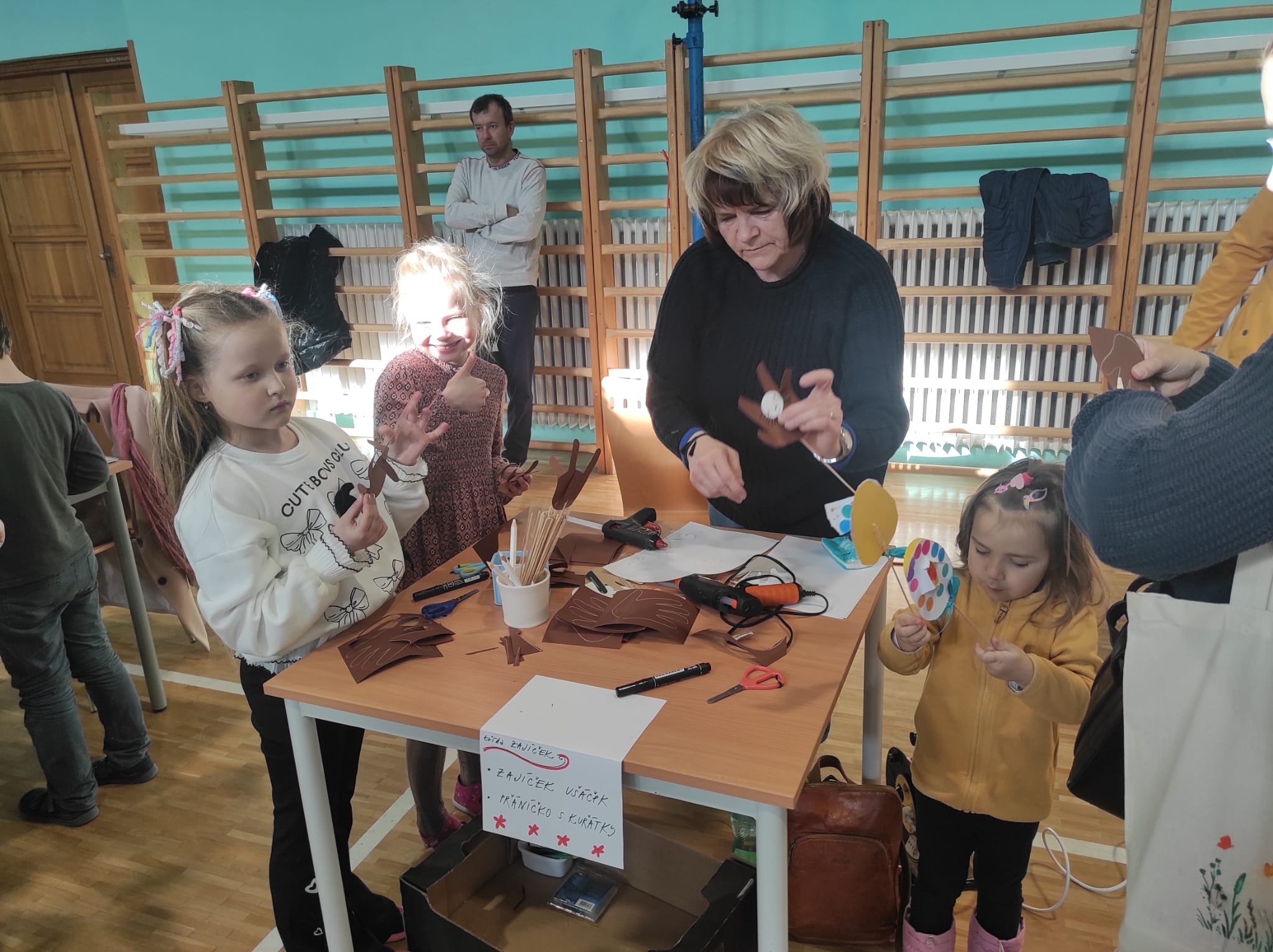 Ve čtvrtek 20. března se naše tělocvična proměnila v "dílnu" pro jarní inspiraci a tvořivost. Společné vyrábění dětí s rodiči, ukázka řezbářské práce i ochutnávka dobrot od šikovných maminek, to vše bylo náplní našeho odpoledne. Vznikla spousta různých dekorací, které v domovech přispějí k dotvoření velikonoční atmosféry.