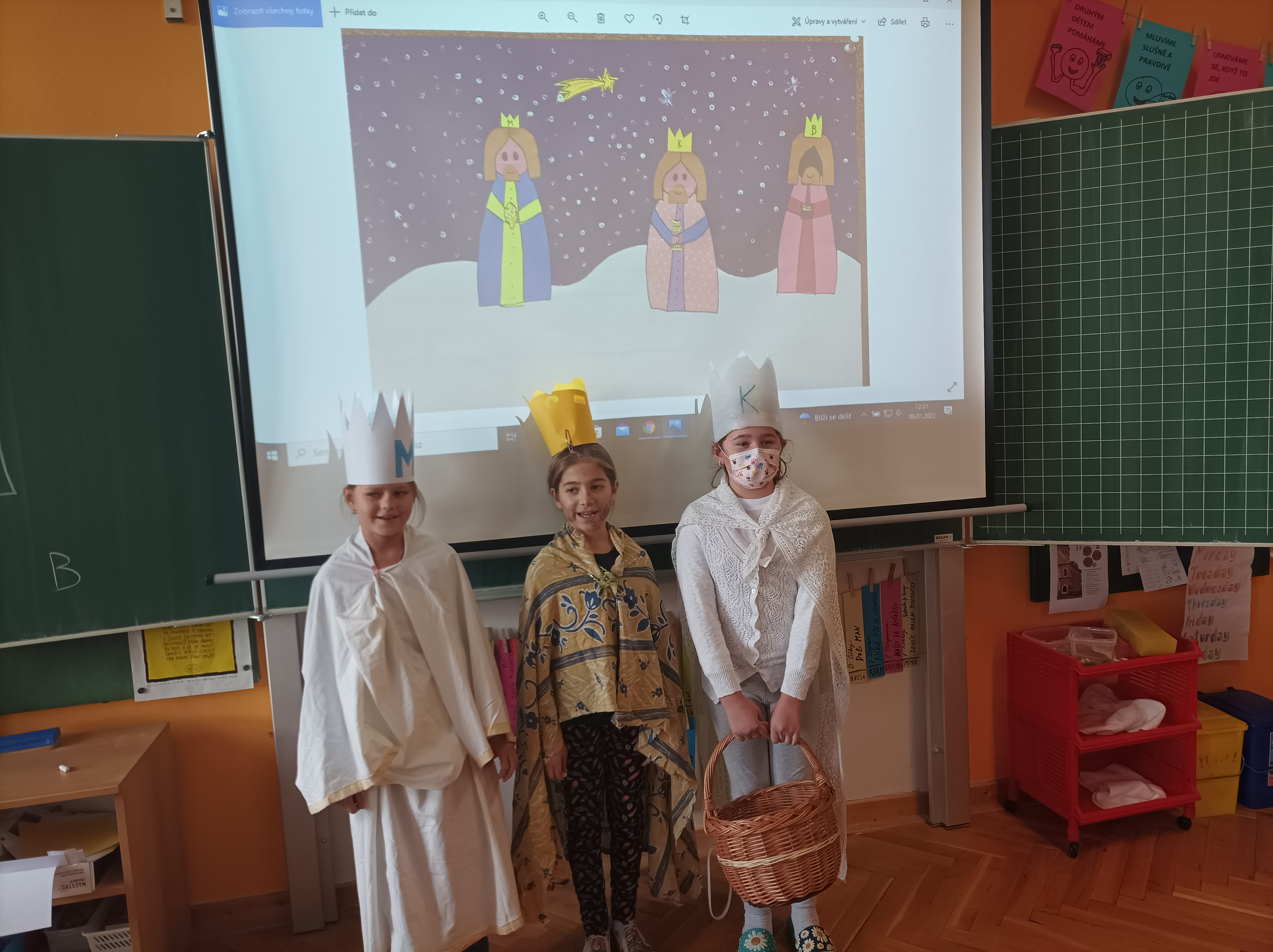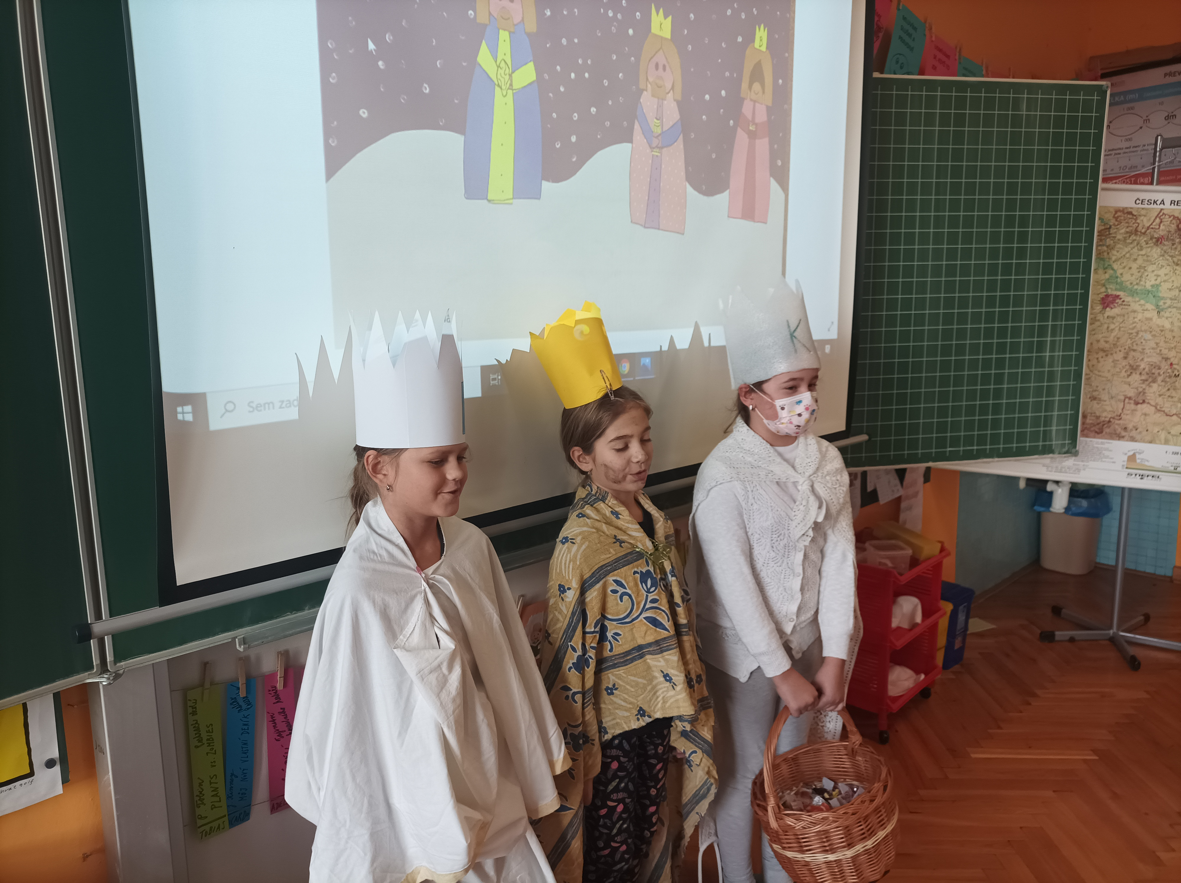 "My tři králové jdeme k vám, štěstí, zdraví, vinšujem vám," znělo ve čtvrtek 6. ledna celou školou. Děkujeme hlavně šikovným králům z 3. třídy!
