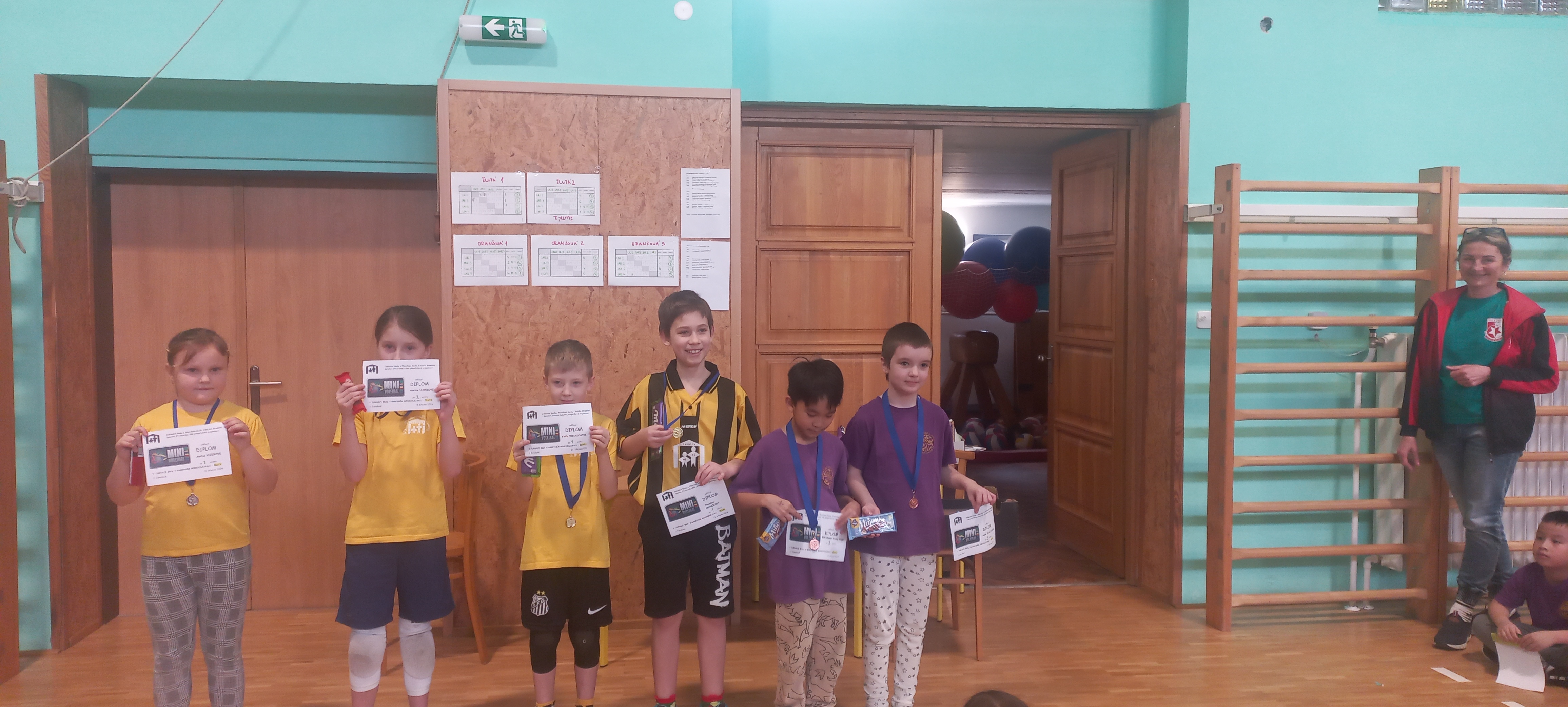 Mezi žlutými vybojovali zlato tým Kirila Pryimycha a Theodora Prchlíka a stříbro Anička Večeřová v týmu s Anetkou Uherkovou. V oranžových barvách zvítězilo družstvo Elišky Brhelové a Terezky Bučkové, stříbro získali Tomášek Vaculík a Adélka Brhelová. V kategorii červených získali stříbro Barbora Taláková s Tomášem Indrou.