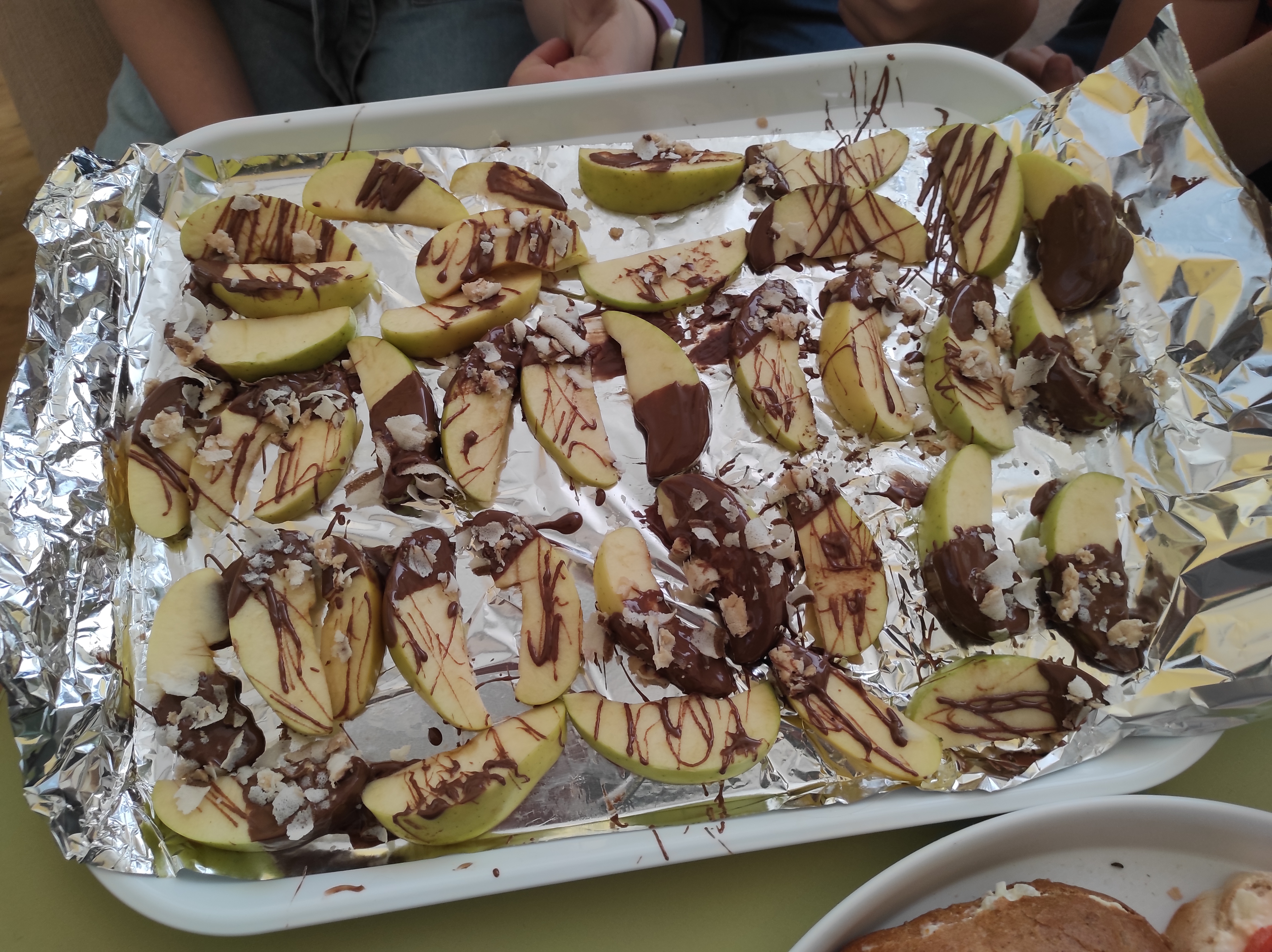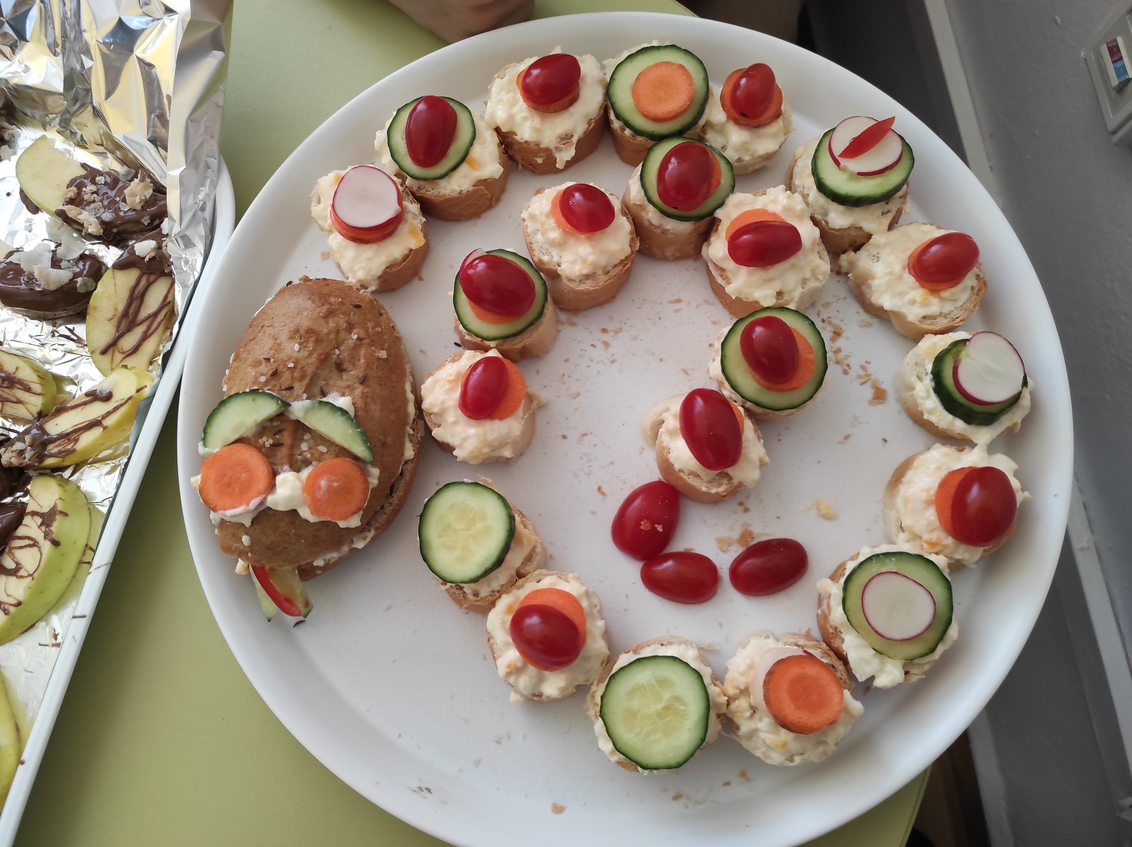 Kroužek "Umím to sám" je zaměřený na vše, co si dokážeme vyrobit rukama - už jsme dělali marmeládu, svíčky, háčkovali jsme, šili, vyráběli vánoční věnce, modelovali... Ale tentokrát bylo naše snažení velmi chutné! Učili jsme se připravit pohoštění na domácí party. Už si věříme, že můžeme pomáhat mamkám nebo si sami nachystat překvapení pro kamarády, až budeme mít třeba narozeninovou oslavu. Připravené pohoštění jsme si samozřejmě všechno snědli :-), ale nezapomněli jsme se podělit se spolužáky.