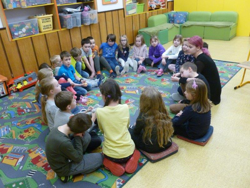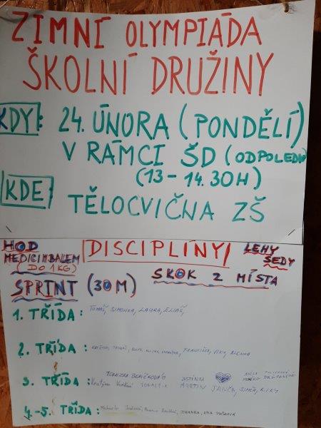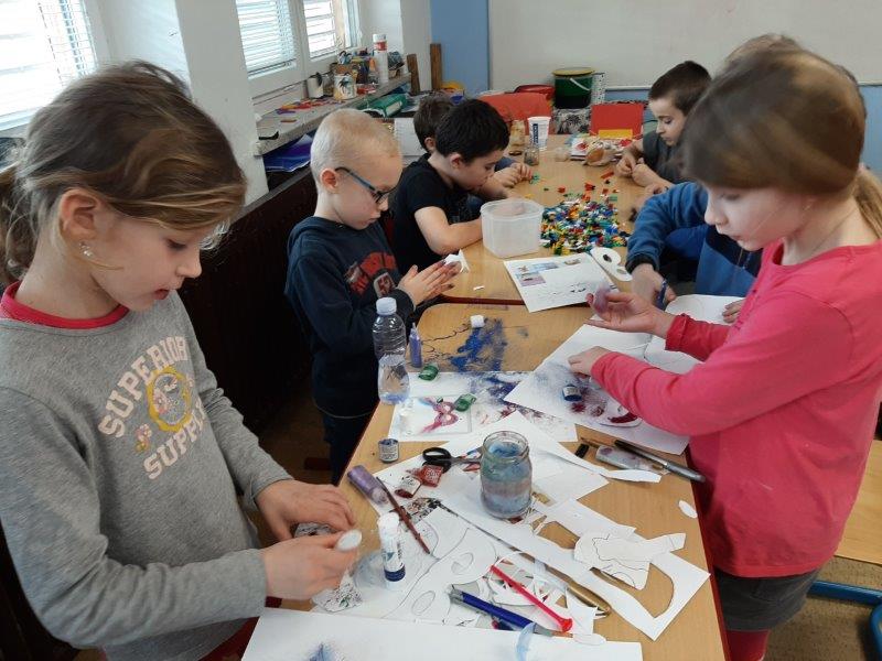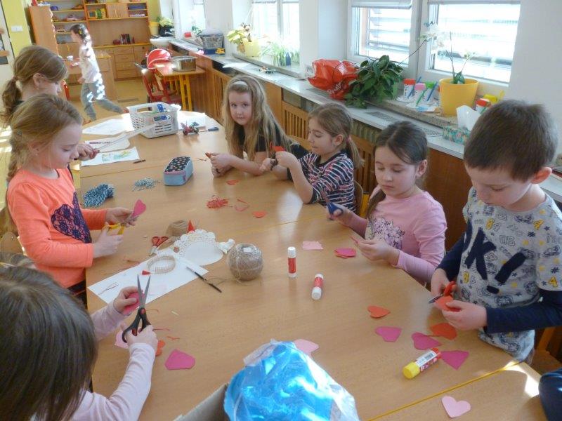 Prožili jsme „Valentýnský svátek“. Svá přáníčka jsme zanechali na vyzdobených srdcích z papíru, nebo v lucerničkách. Odbornice na zdravou výživu se nás pokusily přesvědčit o důležitosti konzumace zeleniny a ovoce. Jejich zajímavé povídání bylo spojeno s ochutnávkou vitamínových koktejlů. Ke zdravé stravě jsme si přidali i pohyb v podobě uspořádání družinové olympiády. A pak už jsme žili především karnevalem. Stříhali jsme, modelovali, lepili a malovali. Výsledkem byli šašci, klauni, masky a karnevalové postavičky. Nezahálel ani pěvecký kroužek, který na karneval připravil krátké vystoupení.