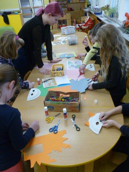 I letos nám pedagogická škola vyslala svou studentku na praxi – Míša s námi prožila pěkné dva týdny. Své teoretické informace si potřebovala ověřit. Například jak se vyrábí hrníčky s čajem, jak se s tak velkou „bandou“ tvoří karnevalové masky, nebo pro nás zajistila besedu se zdravotnicí, paní Nestávalovou. Společně jsme si také zahráli různé hry.