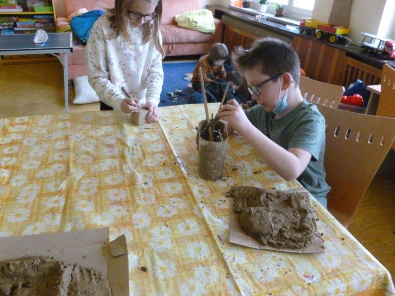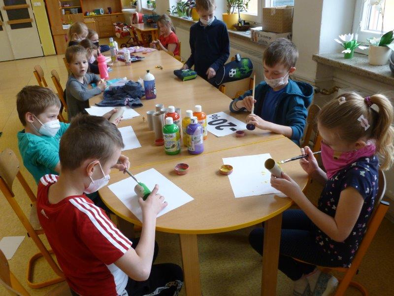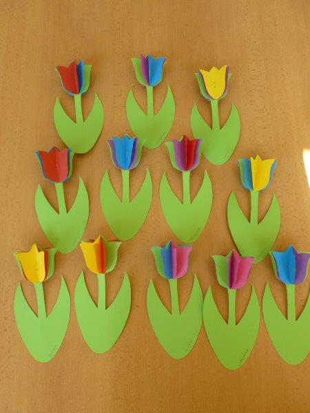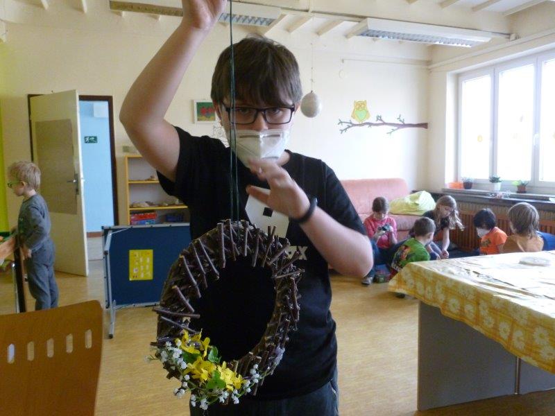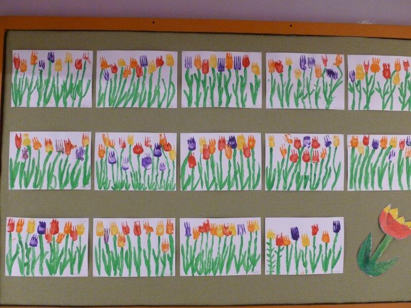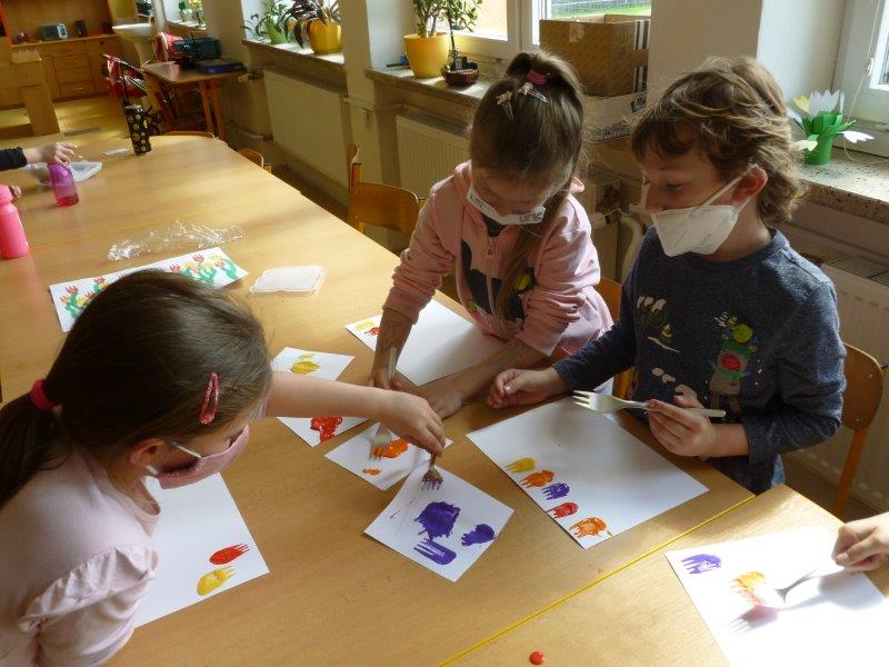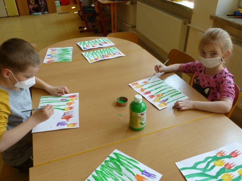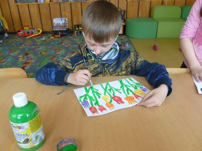 A co se tedy u nás dělo? Hráli jsme si, cvičili, běhali a vyráběli. Kytičky z toaletních ruliček, jarní věnečky z proutí, plastické tulipány, kouzelná zrcátka, namalovali kamínky. Za pomocí vidliček jsme vykouzlili tulipánové záhonky. Pracovali jsme s hlínou, lezli na horolezeckou stěnu a čarodějnicím jsme pomohli s převleky. A když počasí dovolilo, řádili jsme venku.