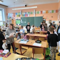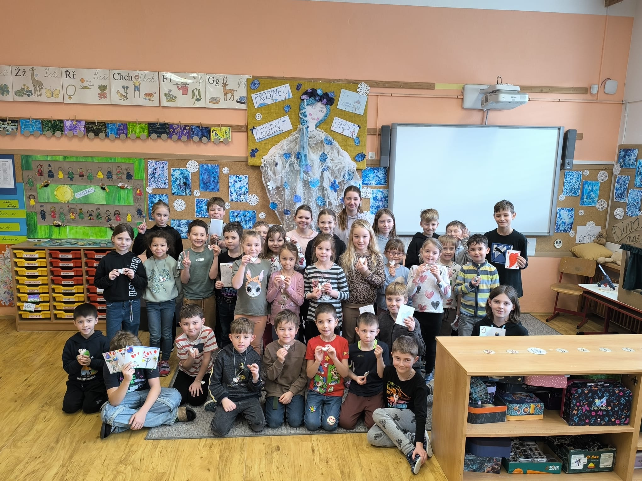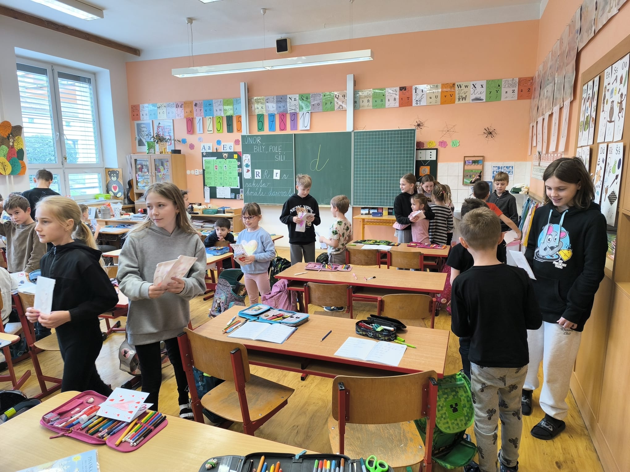 Naši patroni si připravili společné valentýnské setkání s prvňáčky. Žáci 1. a 5. třídy si pro sebe přichystali v hodinách pracovní výchovy drobné milé překvapení, které si před příchodem svátku zamilovaných předali a popřáli si krásného Valentýna.