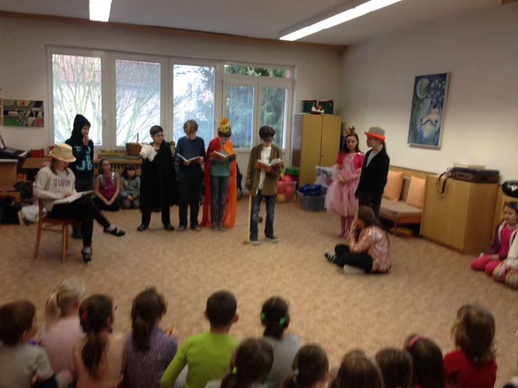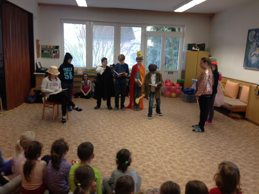 Ve středu 14. února jsme se rozhodli pro valentýnské překvapení v mateřské škole. Čtvrťáci, patroni budoucích prvňáčků, připravili pro své mladší kamarády ze školky tři pohádky. Snažili se je nejen hezky přečíst, ale jednu dokonce i zahráli. Odměnou pro vzorné posluchače byly kouzelné sušenky lásky.