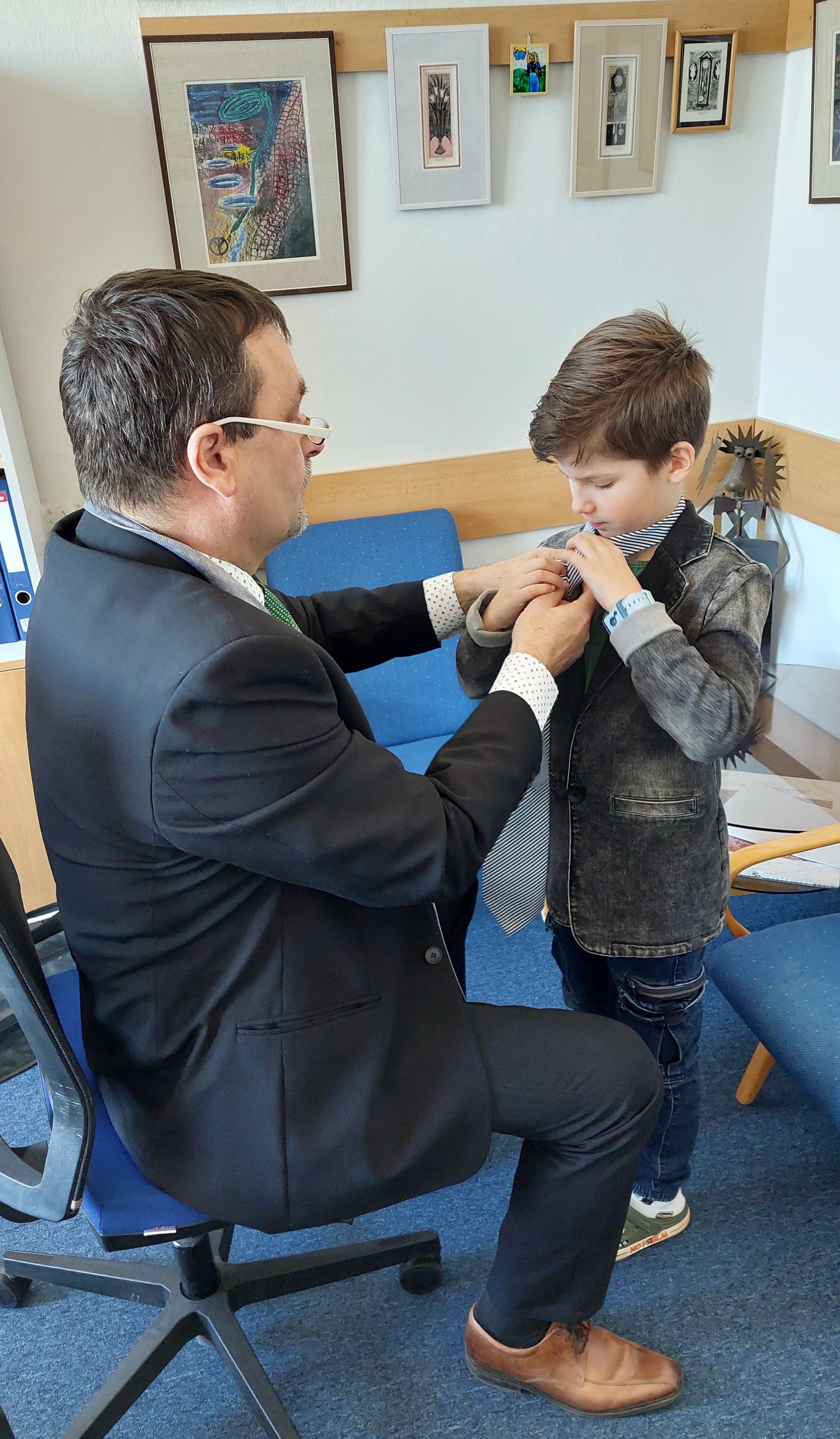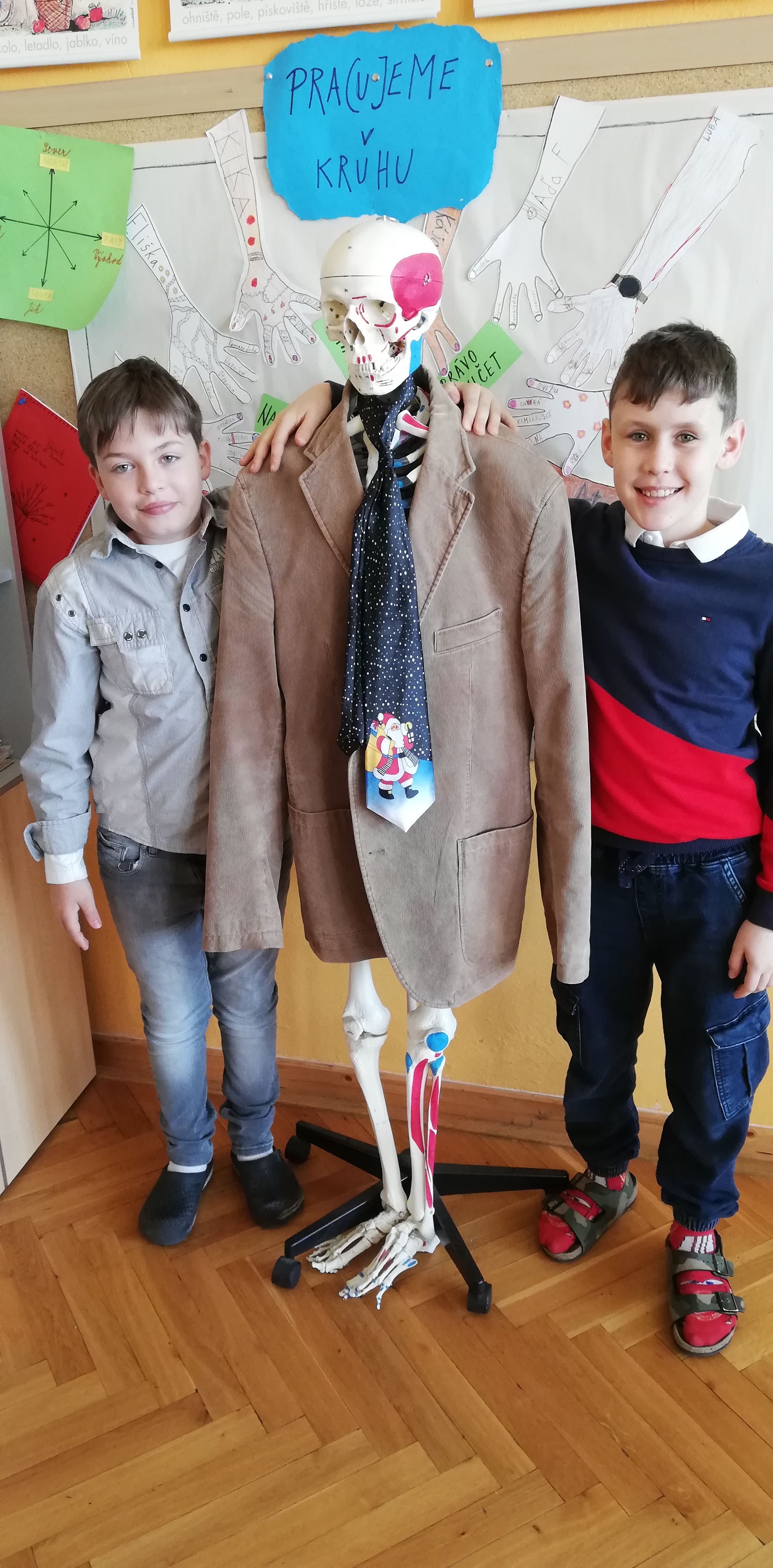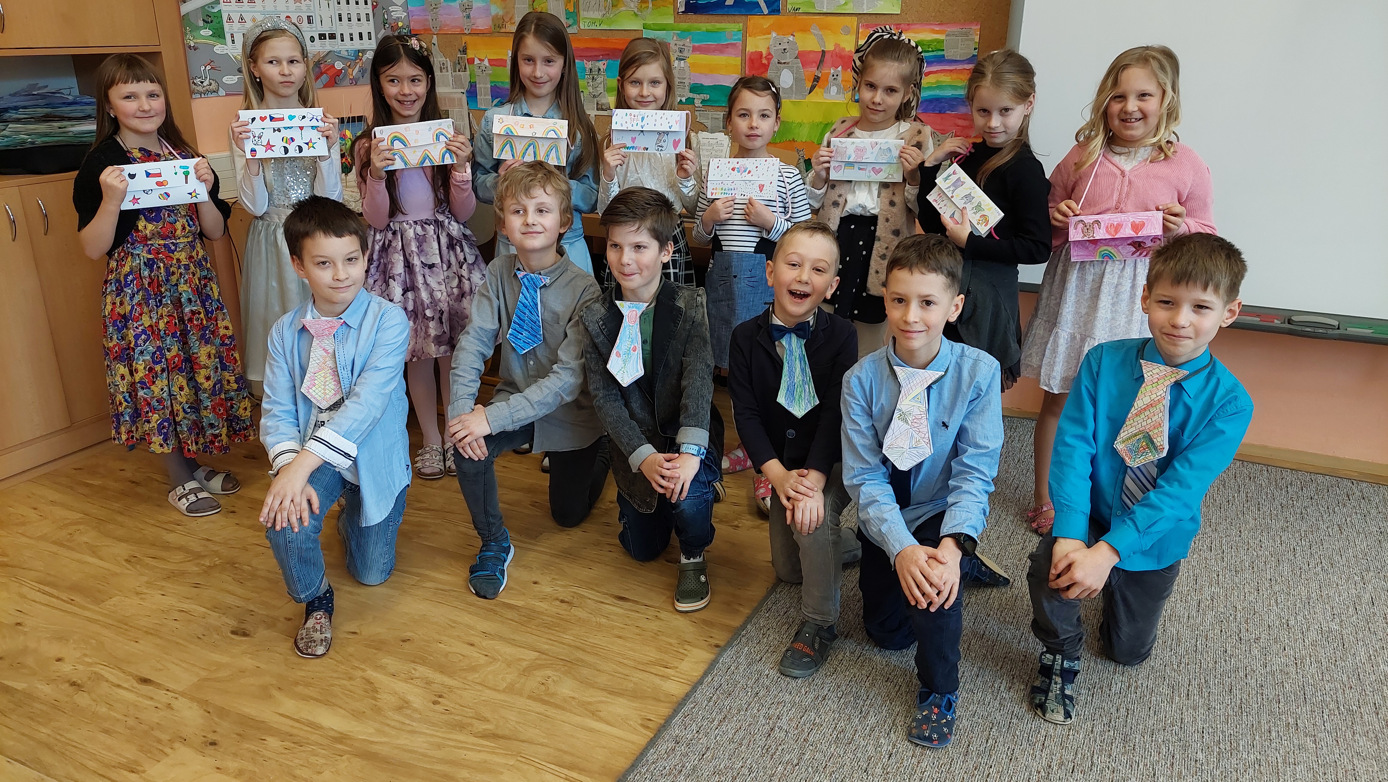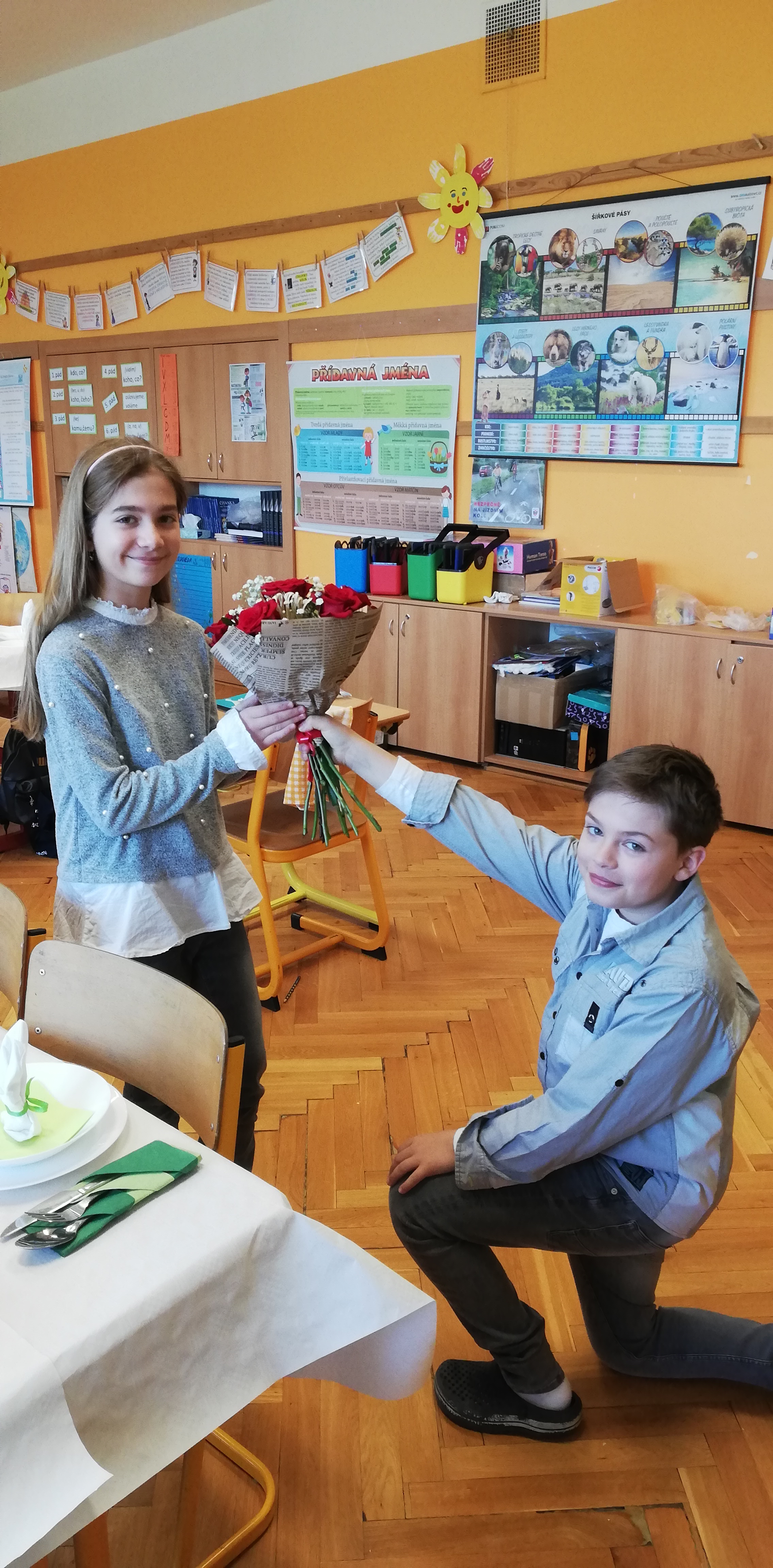 Slušivé oblečení bylo samozřejmostí a celé dopoledne se neslo v duchu etikety. Velké téma bylo stolování a příprava sváteční tabule. Děti se v rámci projektového vyučování seznámily s tím, co je vhodné i nevhodné nosit do společnosti, na svatbu, o svátcích či při dalších společenských příležitostech. Někteří si dokonce zkusili vázat kravatu. V jiných třídách probíhala příprava slavnostních pokrmů a nápojů. Chystání slavnostní tabule tak mají děti již nyní v malíčku a pan Špaček by měl určitě z našich žáků radost.