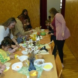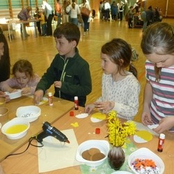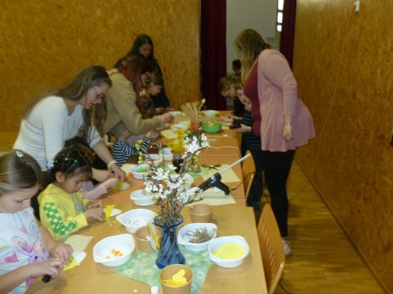 Ve čtvrtek 19. března se v tělocvičně školy konala společná akce MŠ a školní družiny, tvořivá dílna - výroba velikonočních a jarních dekorací. Ani letos nechyběla ukázka zajímavé řezbářské práce a plný stůl lákavého občerstvení. Tvoření rodičů s dětmi bývá vždy velmi příjemné a tak tomu bylo i tentokrát. Děkujeme všem zúčastněným za aktivní zapojení a těšíme se na další akce. Prohlédněte si pár fotografií.