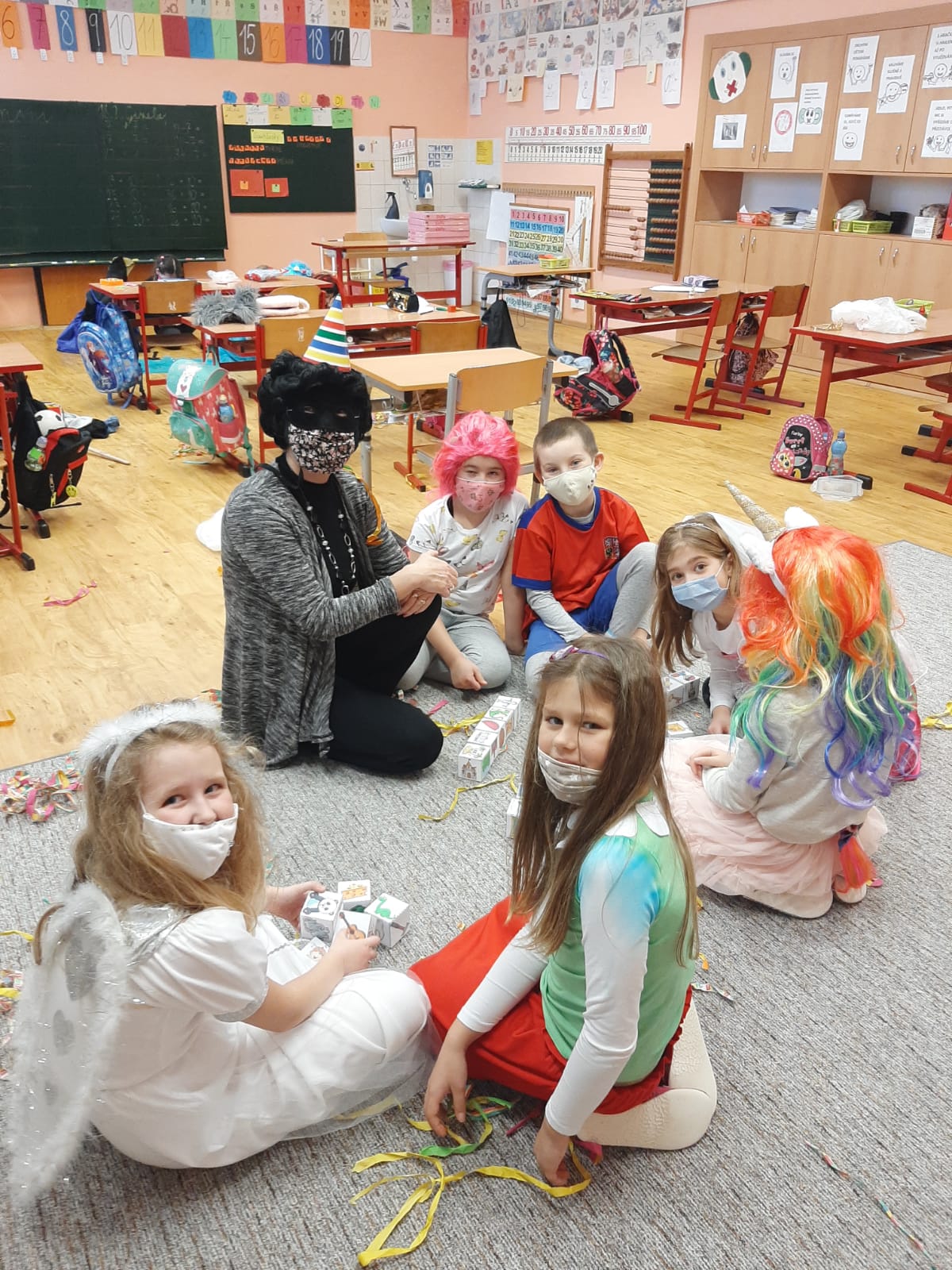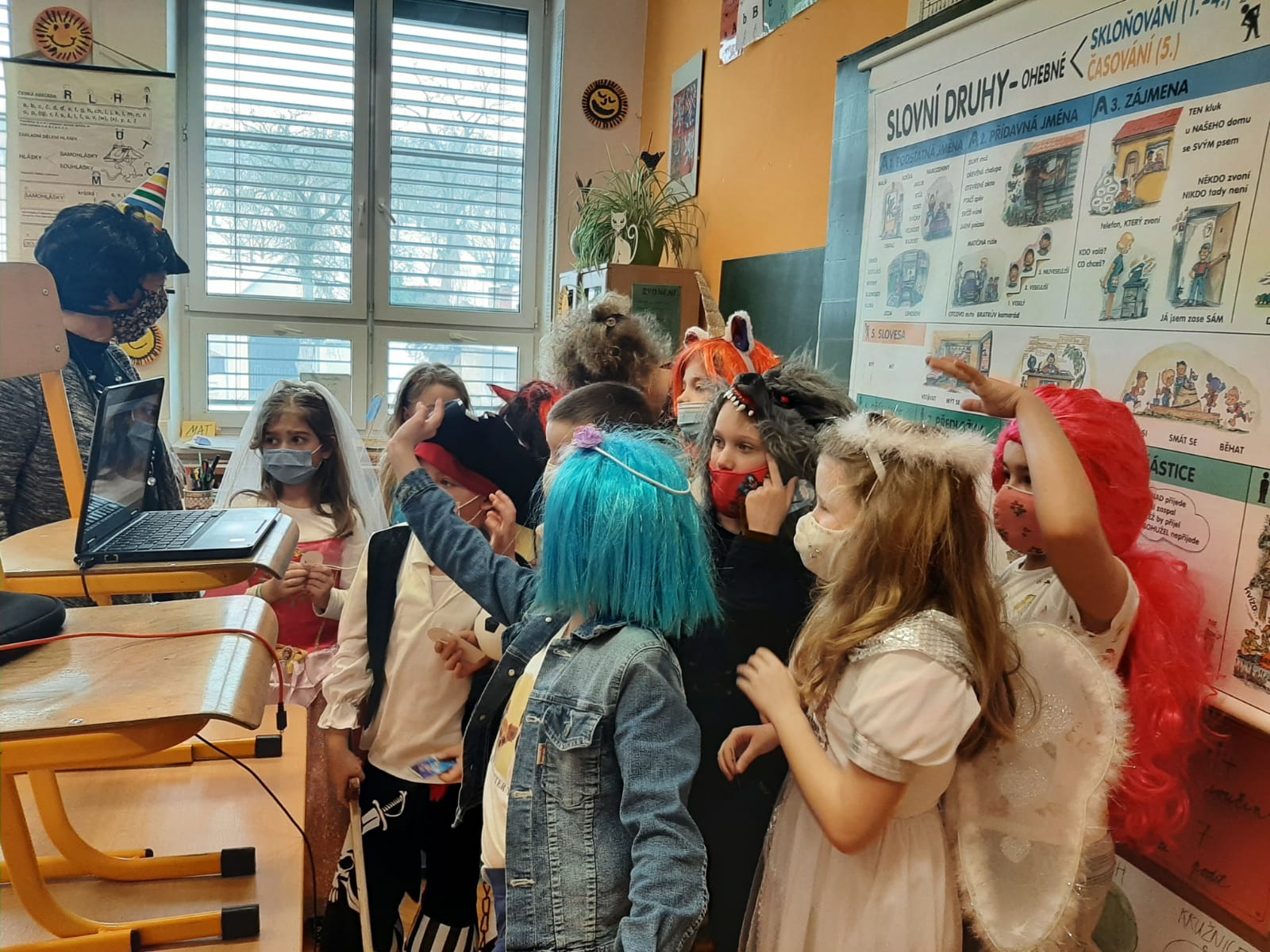 Naši druháci si ve čtvrtek 18. 2. 2021 udělali svůj třídní karneval. A dokonce uspořádali i promenádu v maskách během online hodiny. Potěšili tak na dálku třeťáky.
