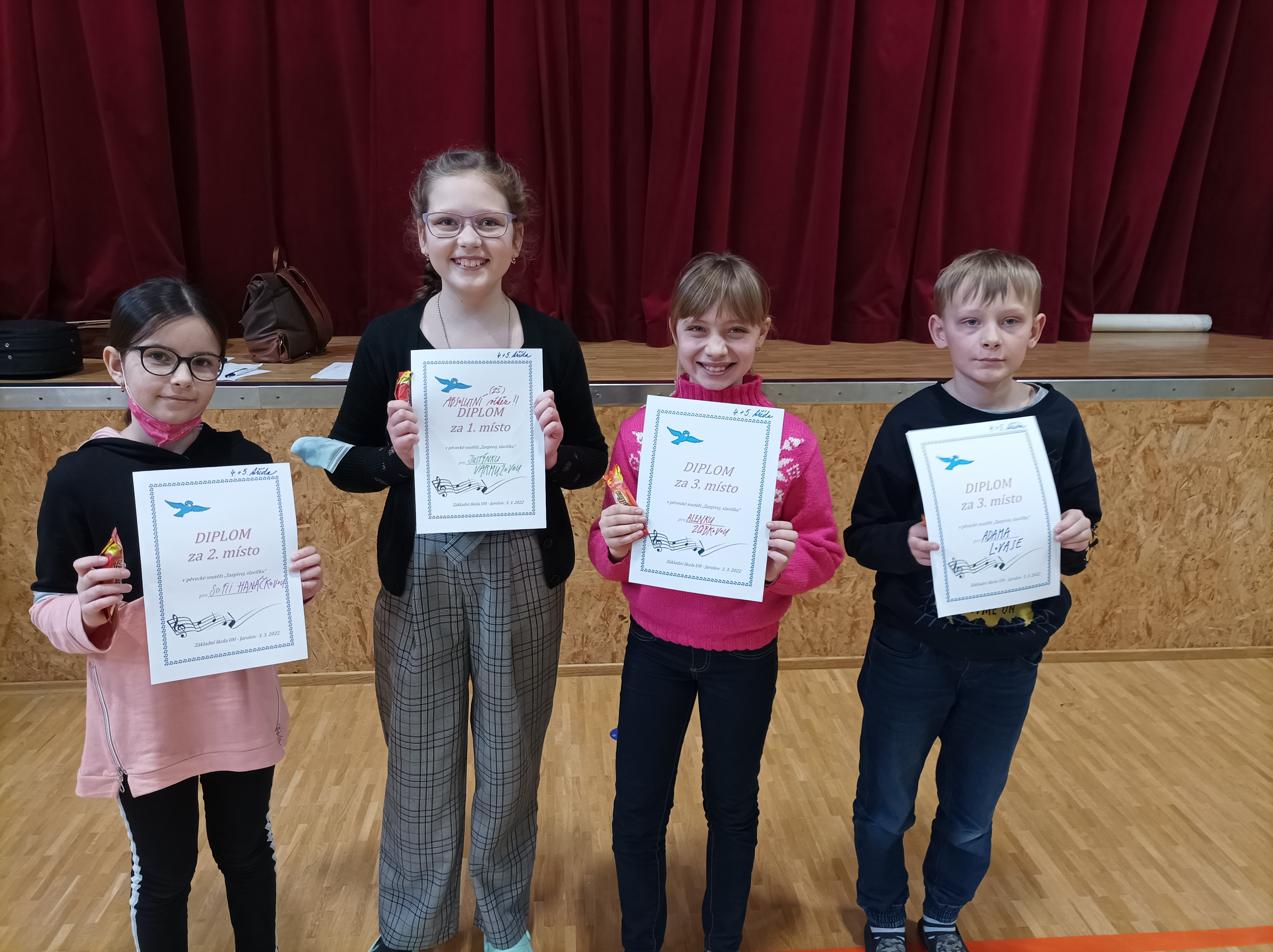 Každá třída vyslala své zástupce s připravenou písní. Porota měla velmi nelehký úkol. Nakonec si diplom vyzpívali tito soutěžící: