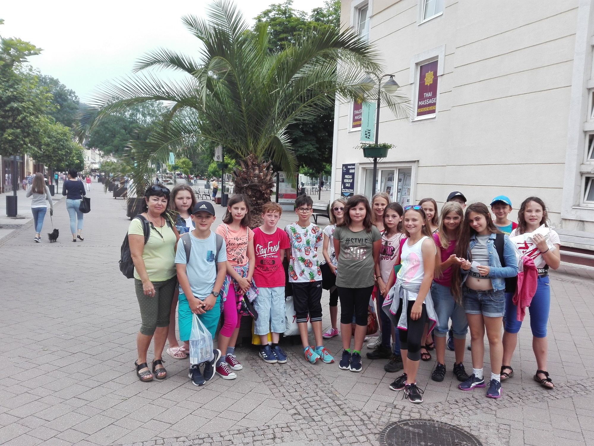 Autobusem jsme přejeli do Trenčianských Teplic. Je to lázeňské město. Najdeme zde spoustu minerálních pramenů. Po dobrém obědě jsme se mohli jít okoupat. Na Zelené Žabě, jak se termální koupaliště jmenovalo, jsme se parádně vyřádili. Po této relaxaci jsme se vydali na kolonádu. Byla by škoda si nekoupit nějaký ten suvenýr či nepřivézt domů pravé lázeňské oplatky.