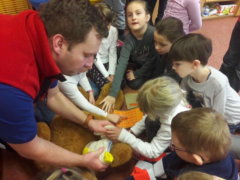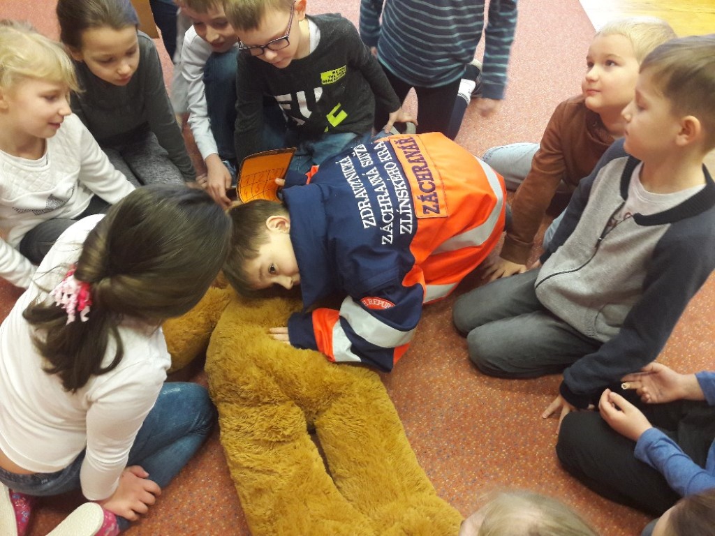 První pomoc pro prváčky aneb "Když nám, medvědům, někdo stůně"... s tímto programem za námi přišel pan záchranář z uherskohradišťské zdravotnické záchranné služby.
