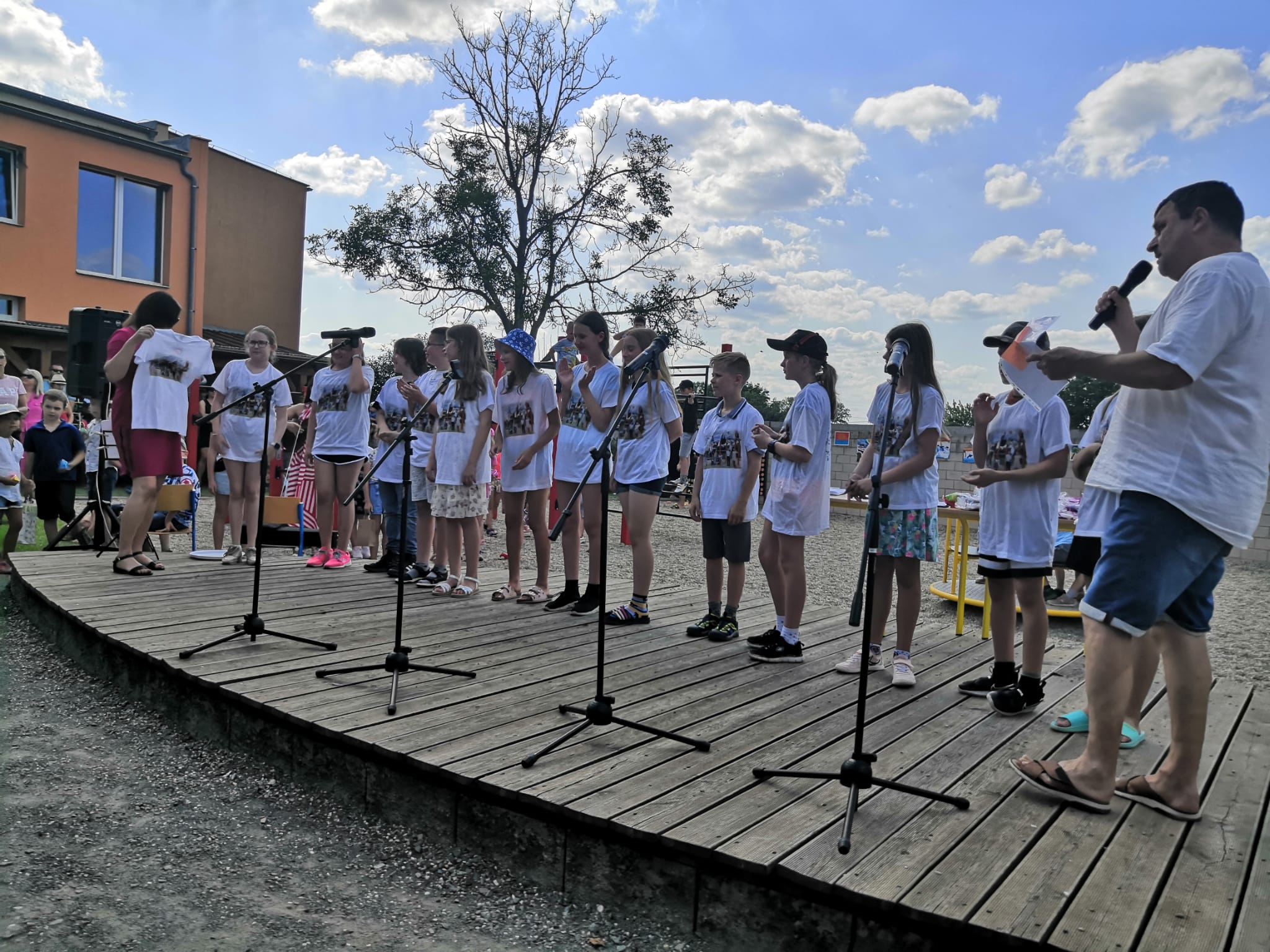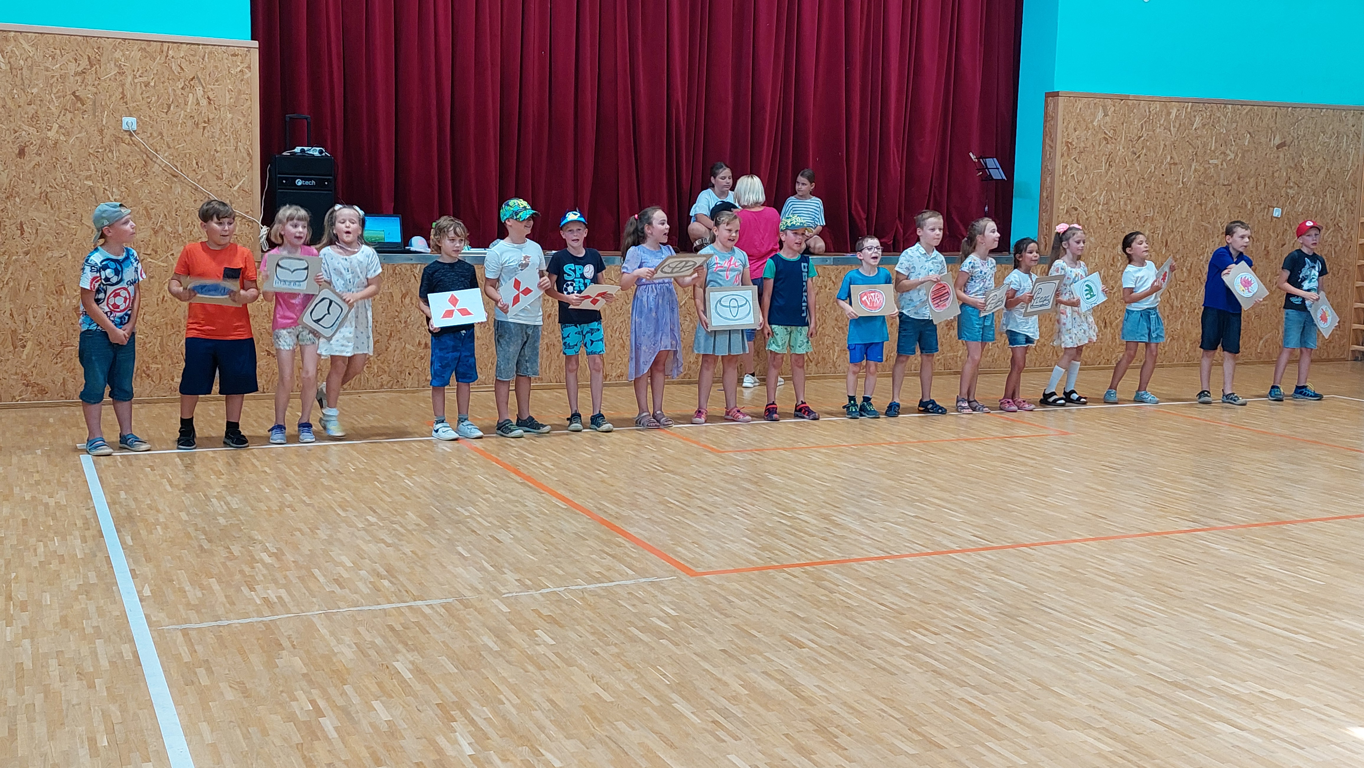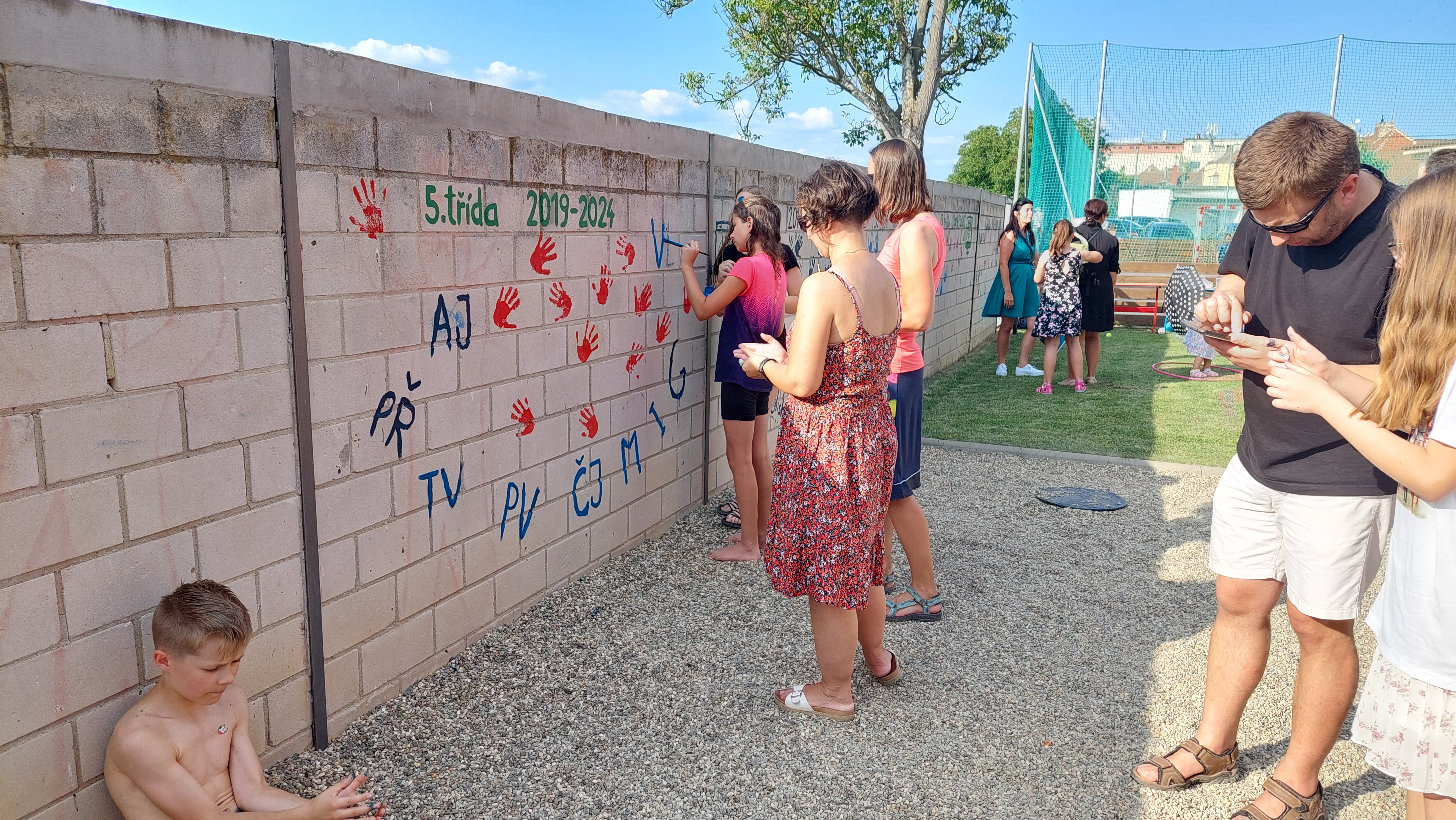 Rozloučili jsme se s páťáky a rovněž přivítali budoucí prváčky, zazpívali, zatančili jsme si a zasoutěžili. Pohoštění bylo vynikající, aktivity pro děti opravdu zábavné – skákací hrad, opékání špekáčků a nakonec úžasné „vodní překvapení“ od SDH Březolupy.
