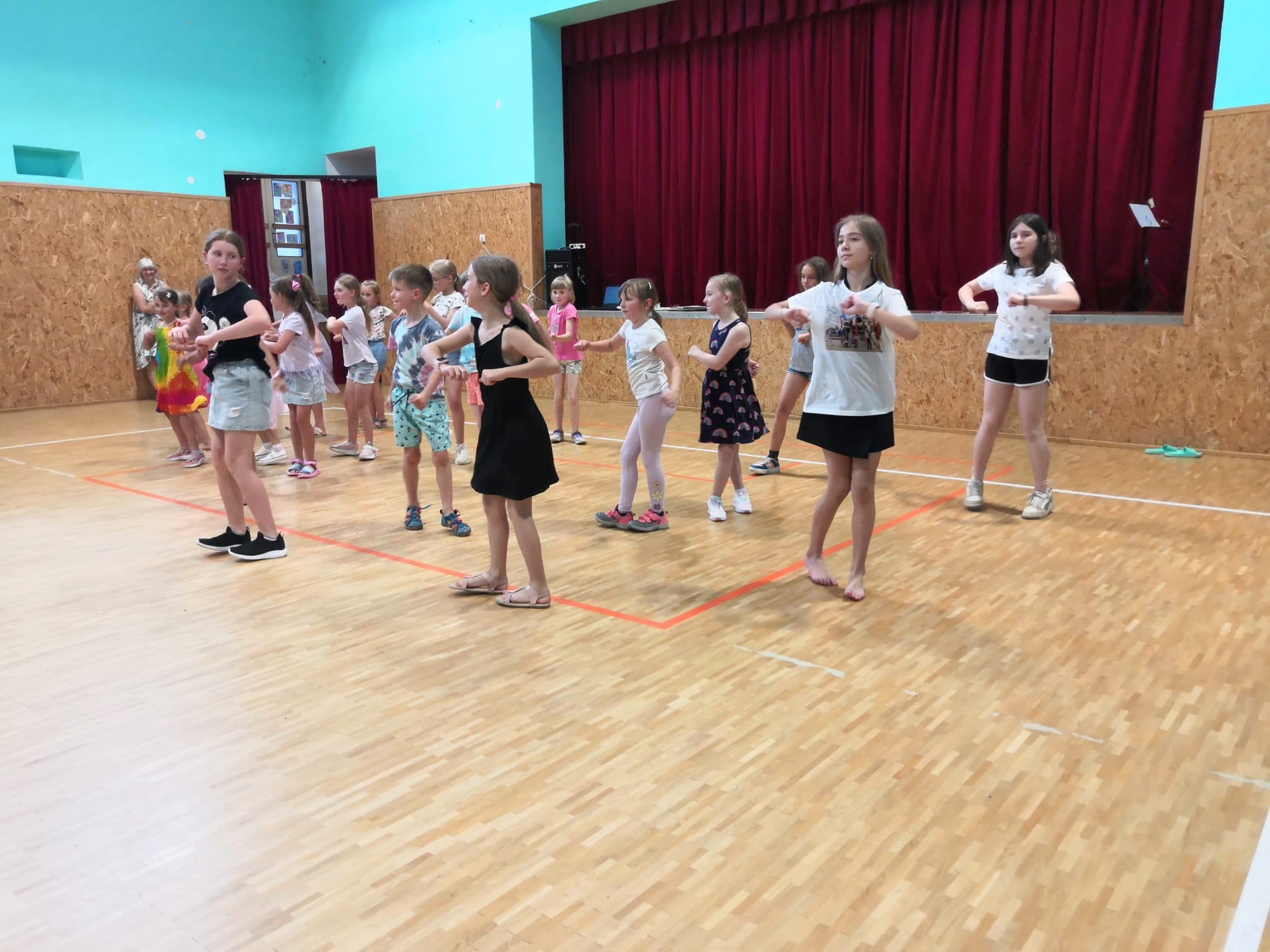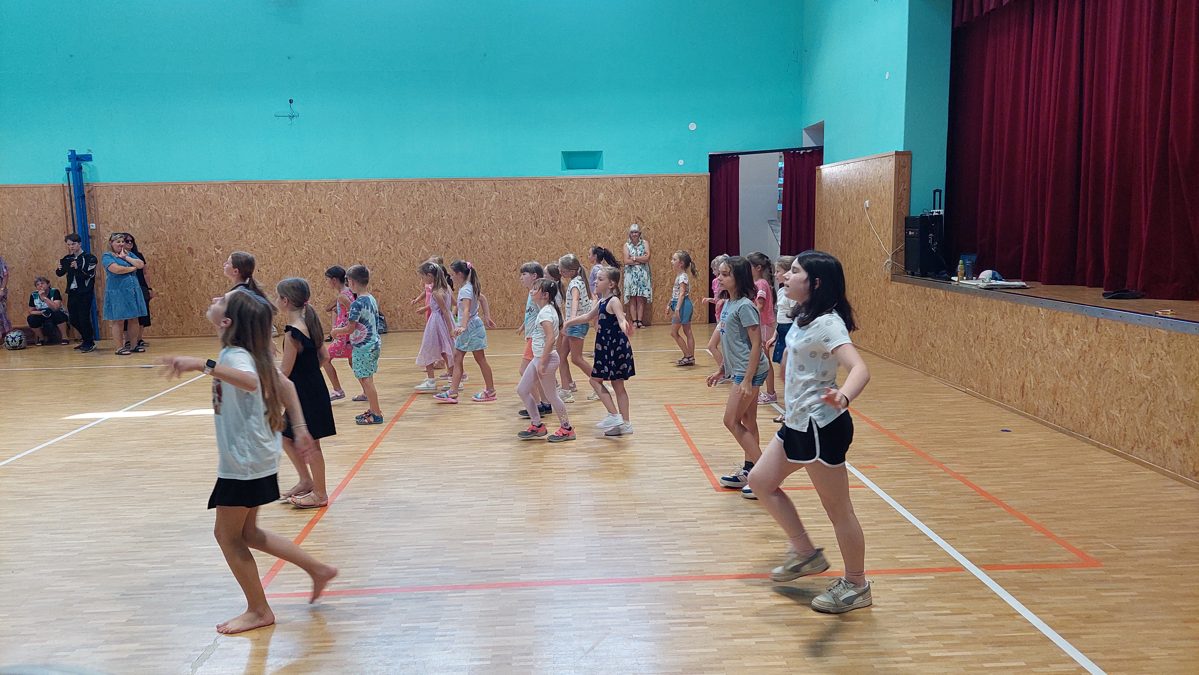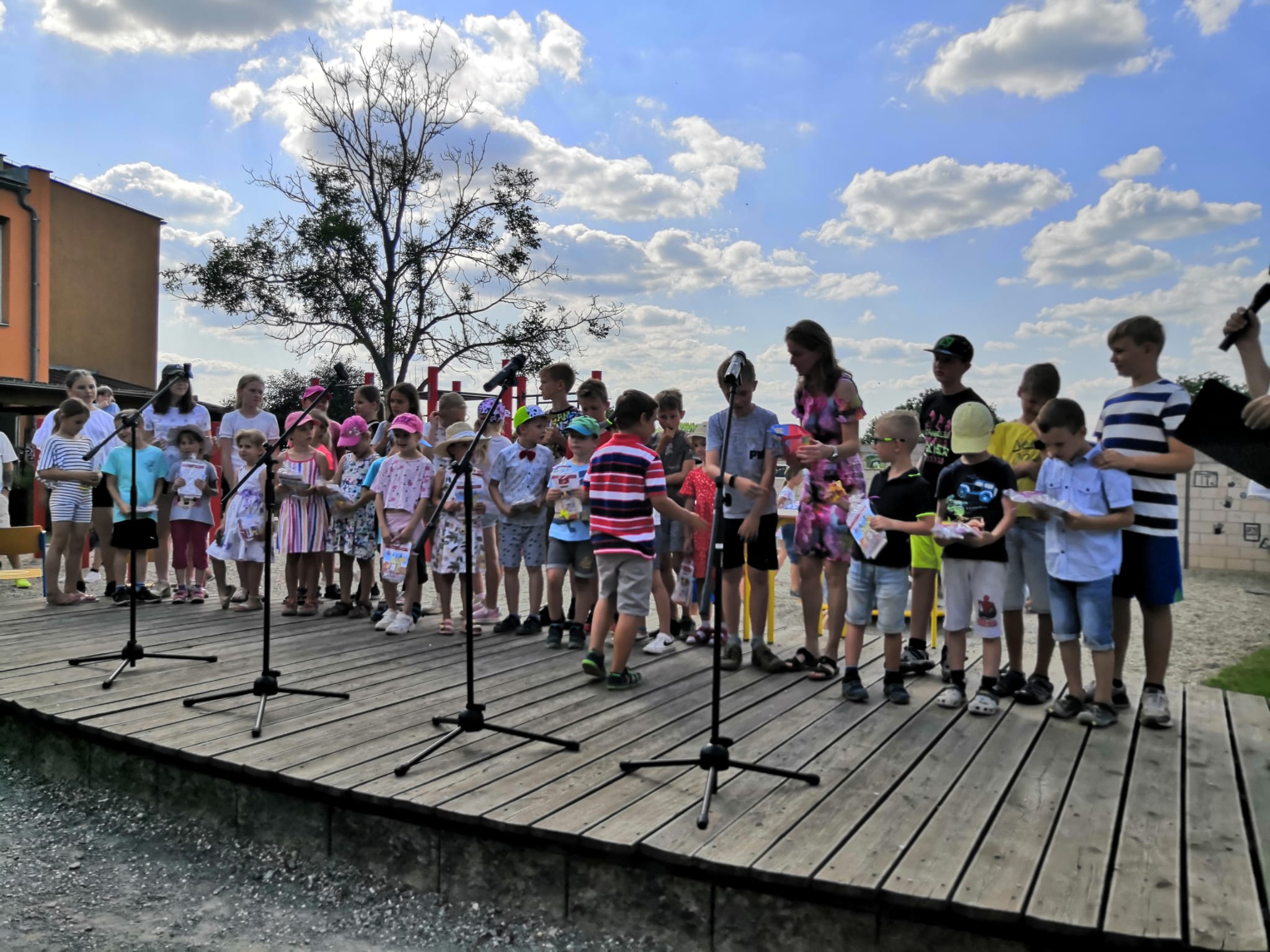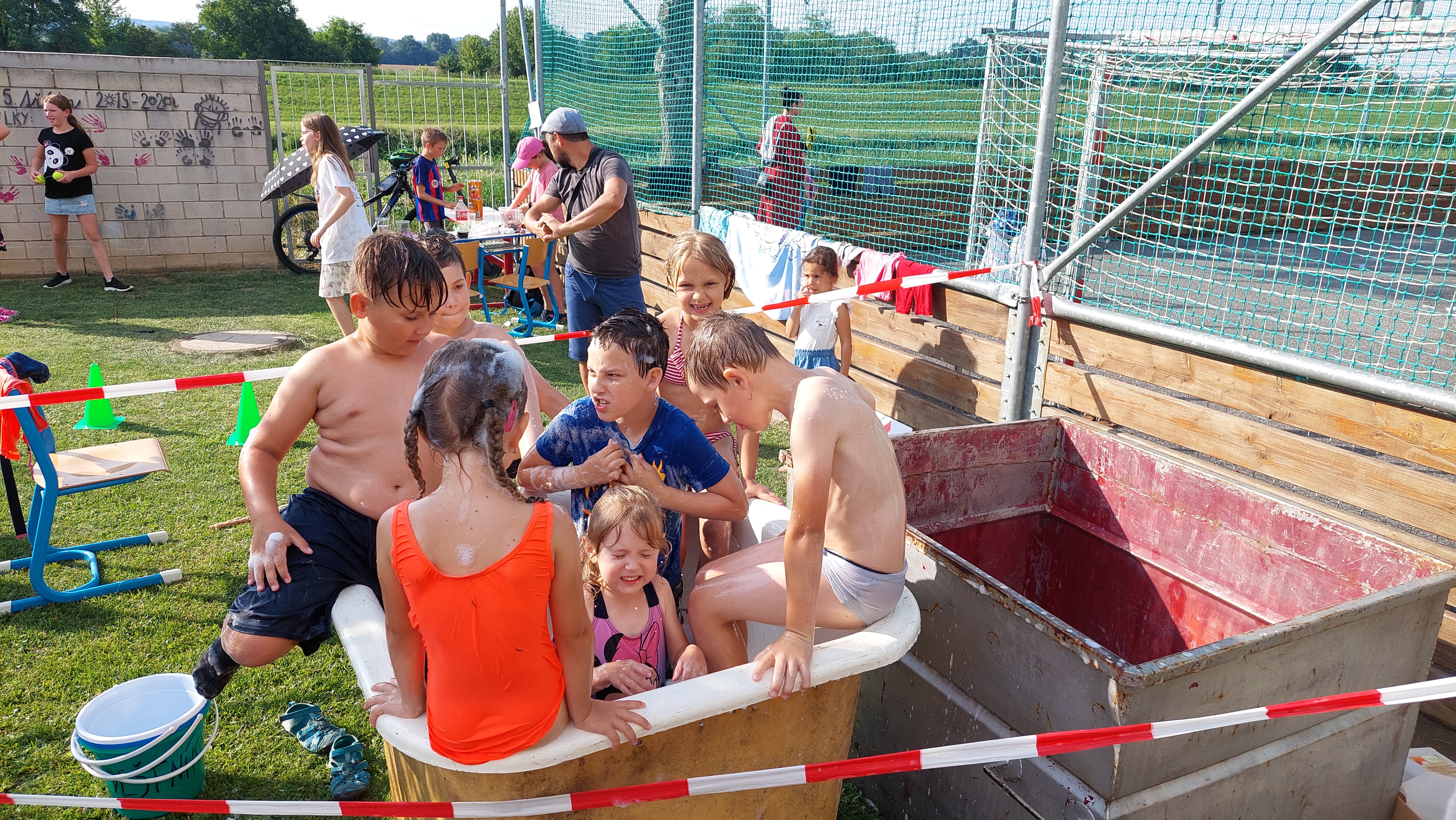 Rozloučili jsme se s páťáky a rovněž přivítali budoucí prváčky, zazpívali, zatančili jsme si a zasoutěžili. Pohoštění bylo vynikající, aktivity pro děti opravdu zábavné – skákací hrad, opékání špekáčků a nakonec úžasné „vodní překvapení“ od SDH Březolupy.