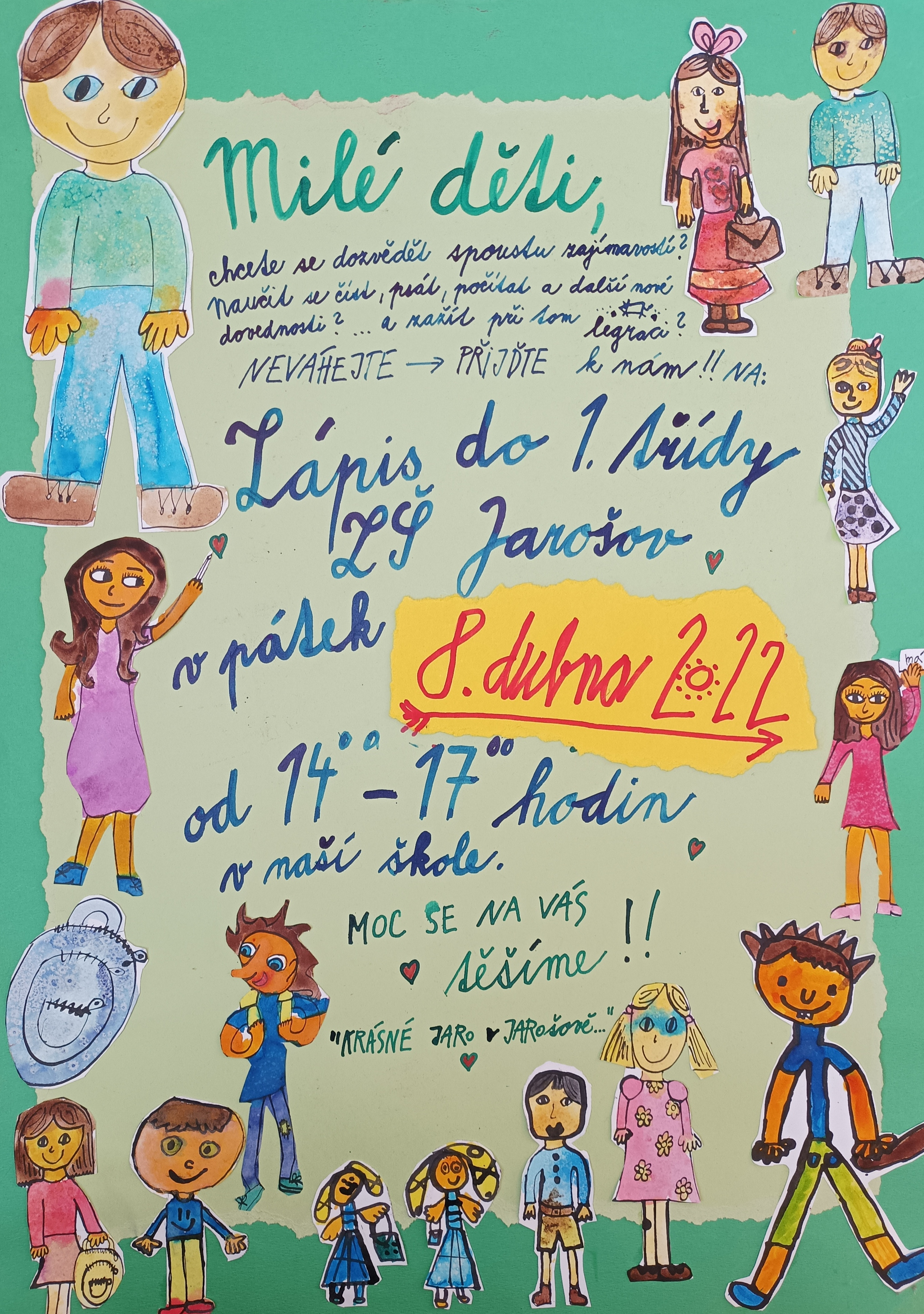Zápis do 1. třídy se uskuteční v pátek 8. dubna 2022 od 14 do 17 hodin.