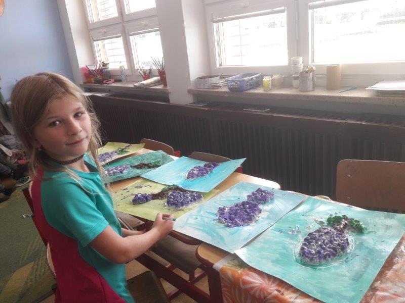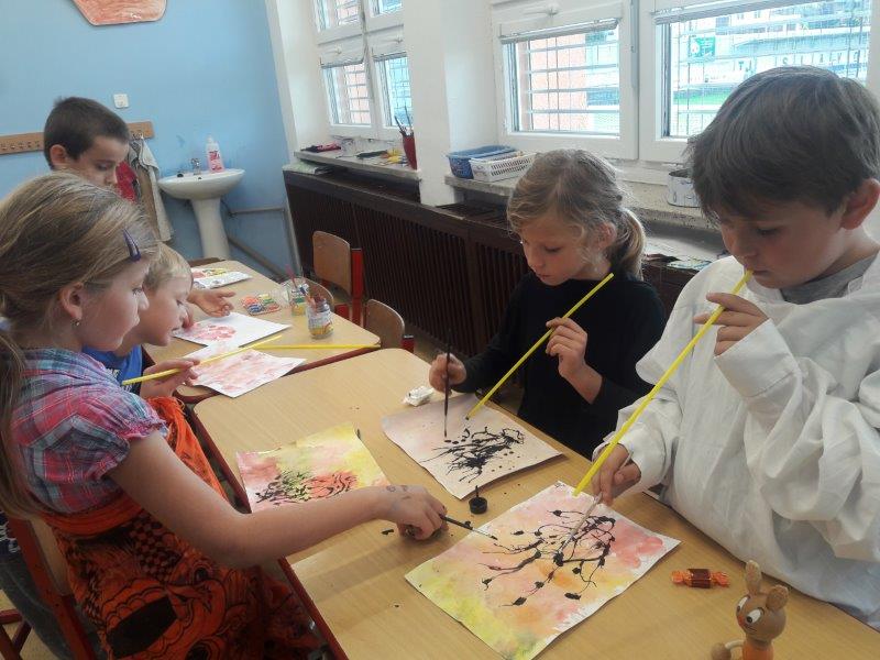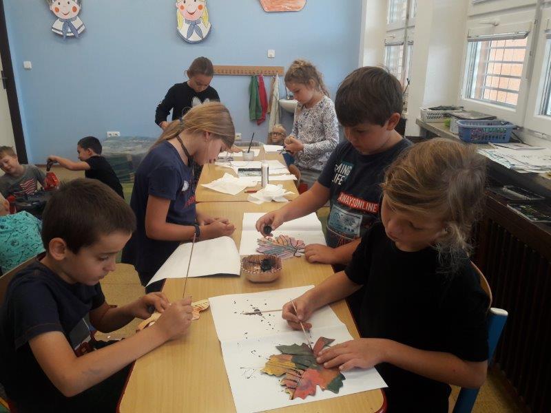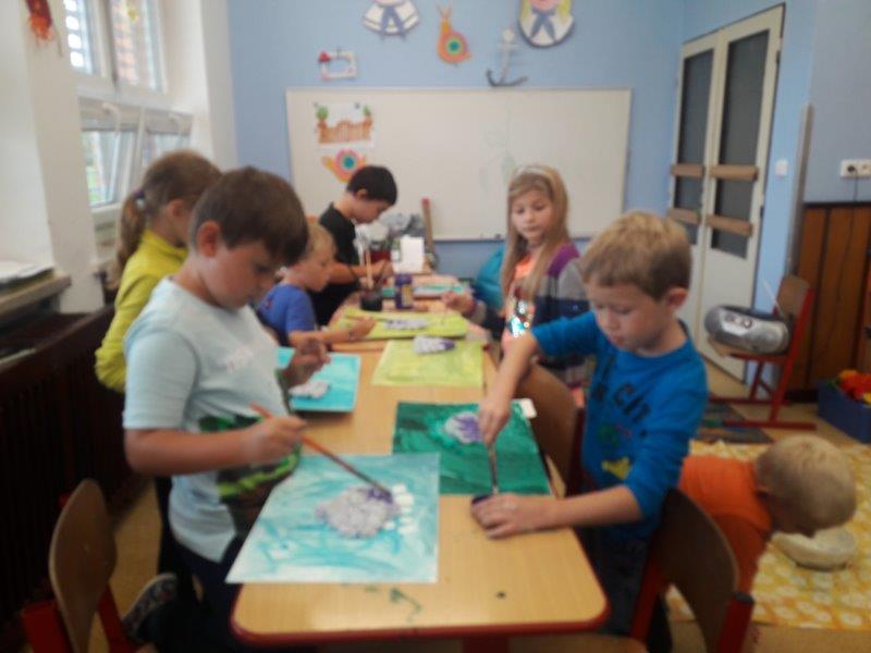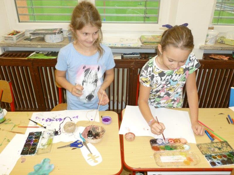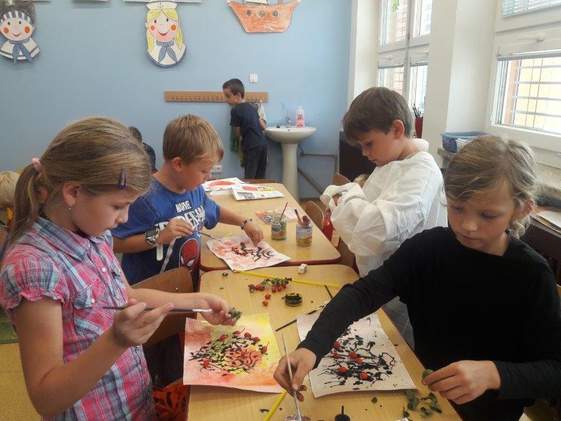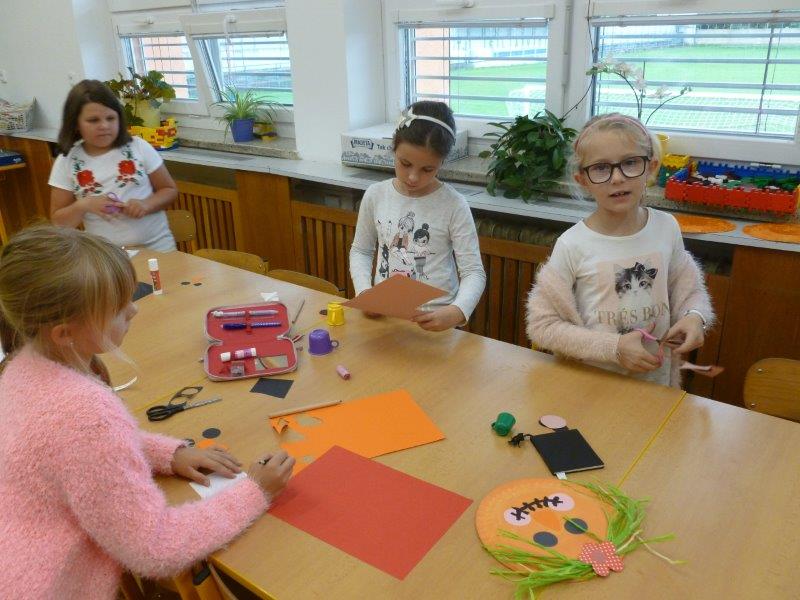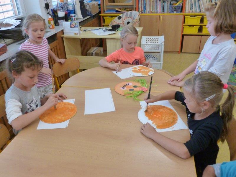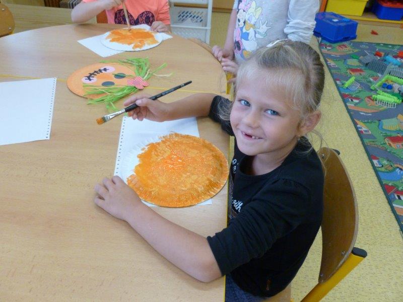 I letos je o pobyt ve školní družině velký zájem - otevřená jsou tři oddělení. Když jsme všichni, značně se zmenší prostor a narůstají decibely, takže pro náhodného kolemjdoucího můžou zvuky za dveřmi připomínat odloučené pracoviště ZOO. V úvodním měsíci se nám podařilo seznámit s novými kamarády, částečně si zvyknout na nastolená pravidla. Pěvecký a taneční kroužek se postaral o kulturní program hned 2. září. Hodně času jsme trávili na školním hřišti, honili se za balóny, točili na kolotoči, prolézali a skákali přes gumu. Ve třídě jsme kreslili, lepili, stříhali. Vytvořili jsme hrozno, rozfoukali větvičky a vystříhali listy v podzimním oděvu. Připravili jsme nástěnku z dýní a nacvičili strašidelné písně pro „Dýňování“.