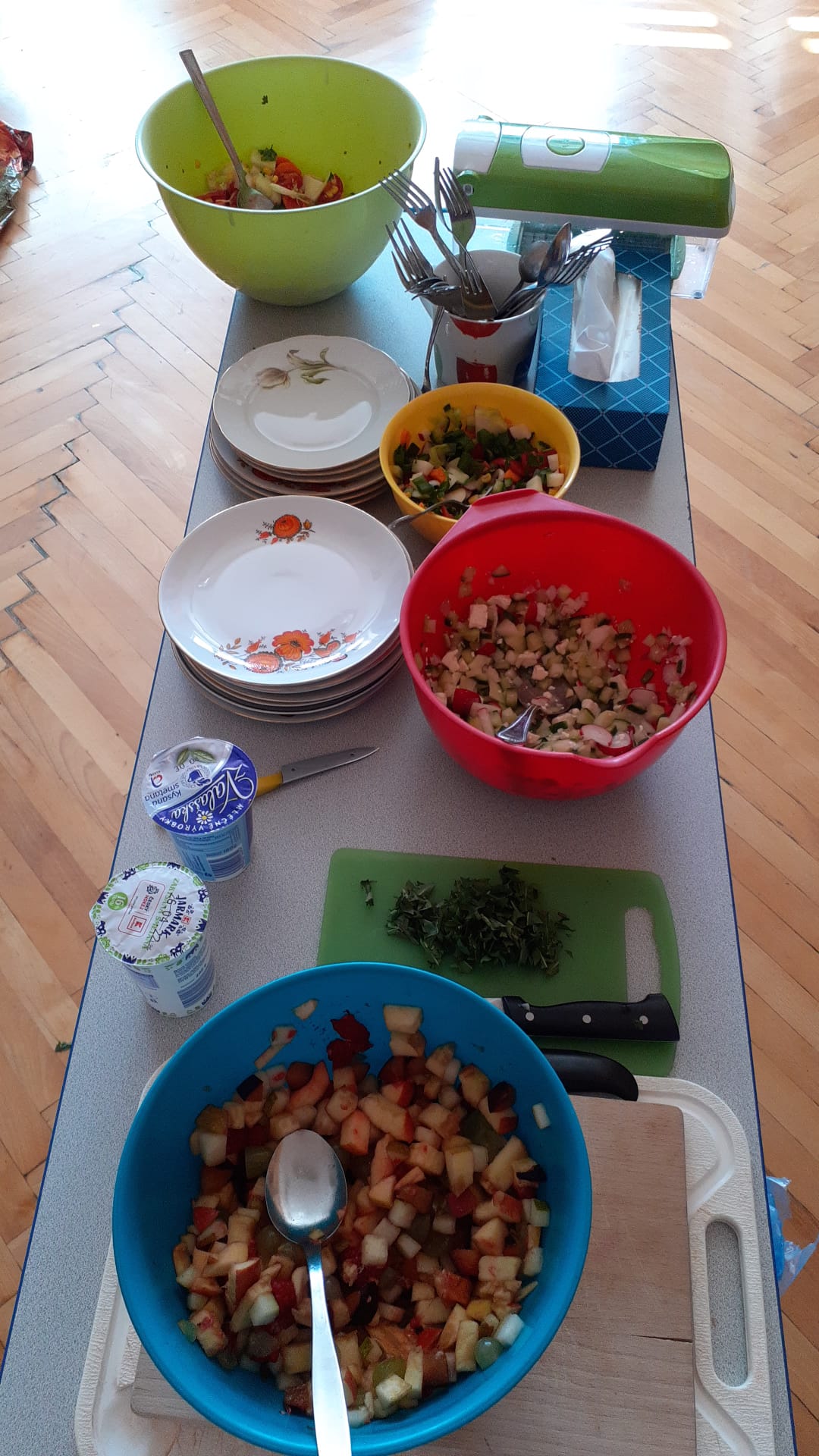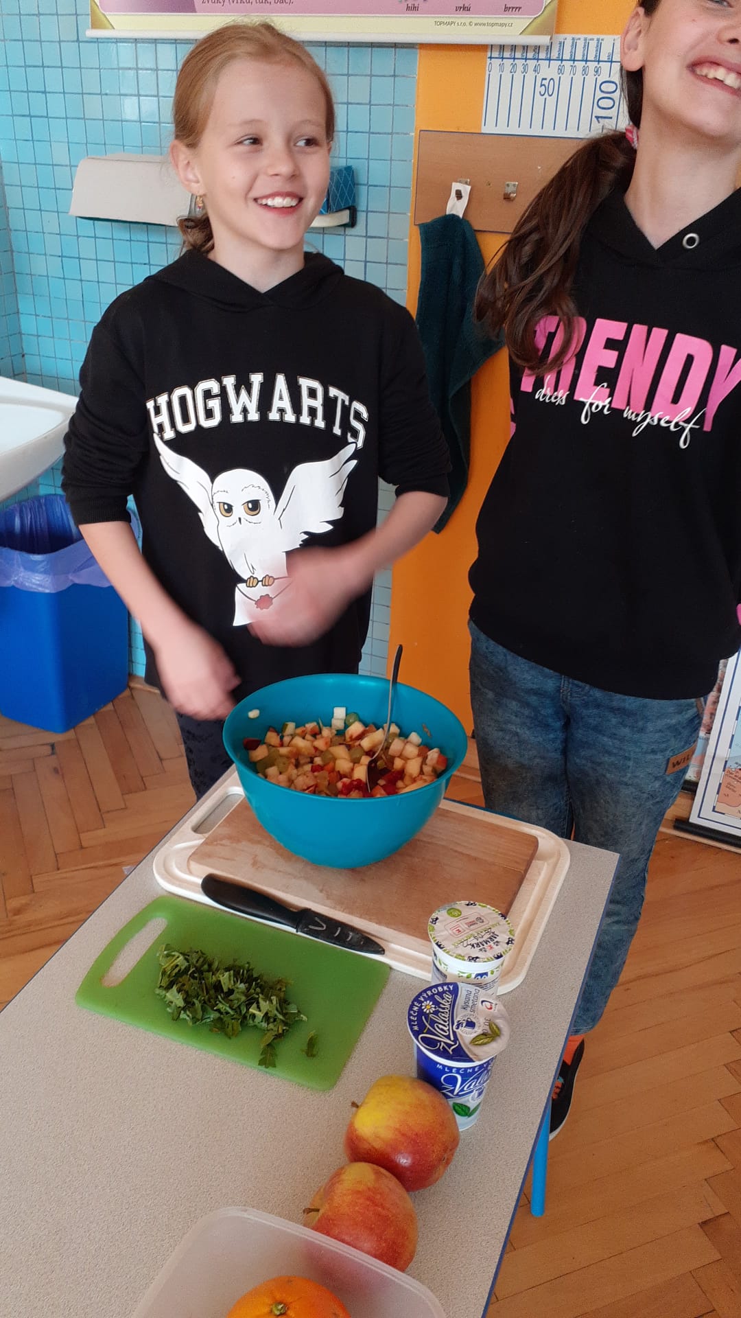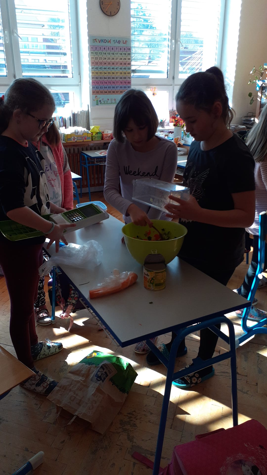 V prvouce se učíme o ovoci a zelenině. Dobrý důvod si zařadit toto téma k projektovému dni o svátcích jara. Hospodyňky doma chystají na Velikonoce spoustu dobrot, my také nezůstáváme pozadu. A tak naši třeťáci nelenili a umíchali nejeden zdravý a chutný salát. Kdo šel kolem, nabízené ochutnávce opravdu neodolal.